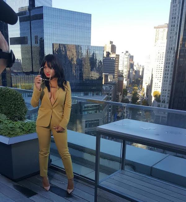 Crooner turned reality starlet Christina Milian was spotted in New York City dressed in a $125 Topshop Premium Fitted Single Breasted Blazer and matching $68 Ankle Length Pants from the brand: