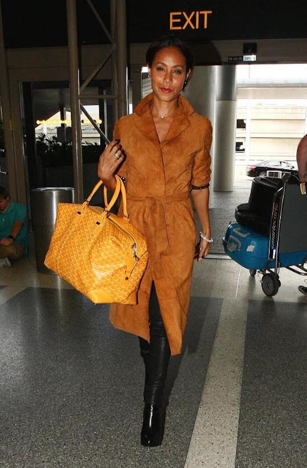 Jada Pinkett Smith kept it effortlessly chic at LAX Airport, sporting a $1,400 Frame Denim Camel ‘Le Duster’ Camel Suede Tie Front Coat: