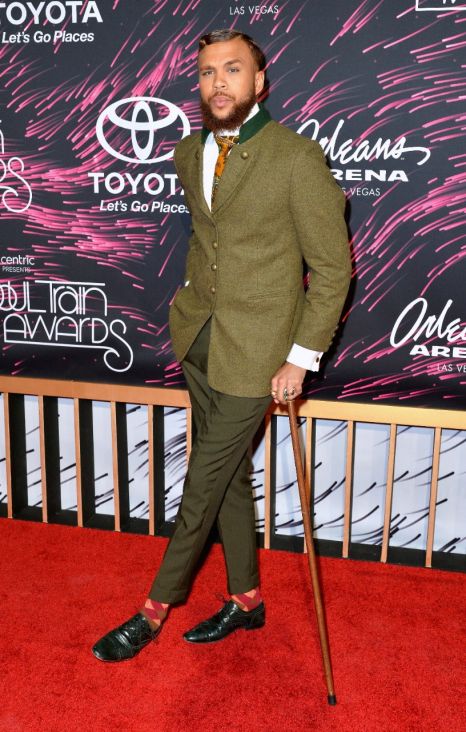 Her label mate Jidenna looked dapper in olive green tweed and argyle socks.