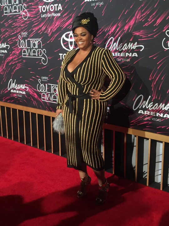Jill Scott looked bodacious in a Balmain striped long line cardigan, worn as a dress.