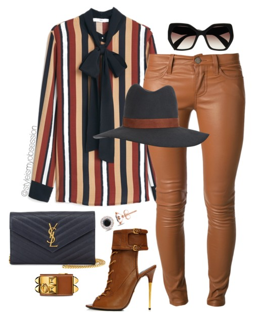 Lastly, give brown leather pants some kick with a striped top from Mango.