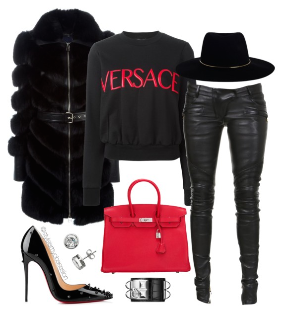 Complete with Christian Louboutin pumps, a wide brim hat, and a luxurious coat.