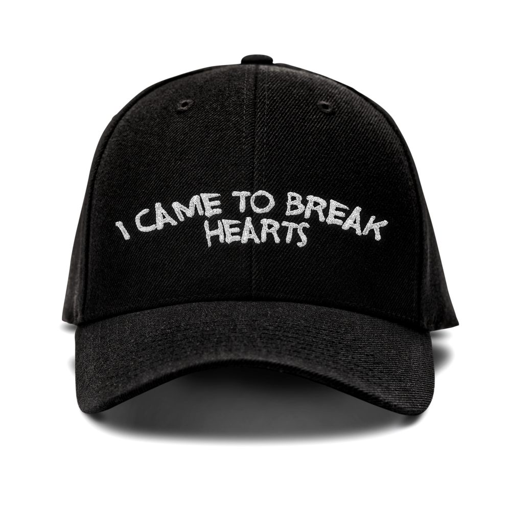 Her cap has ‘I Came to Break Hearts’ on the front and a broken heart on the back.