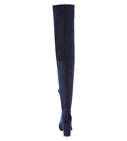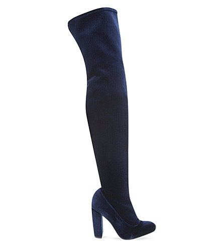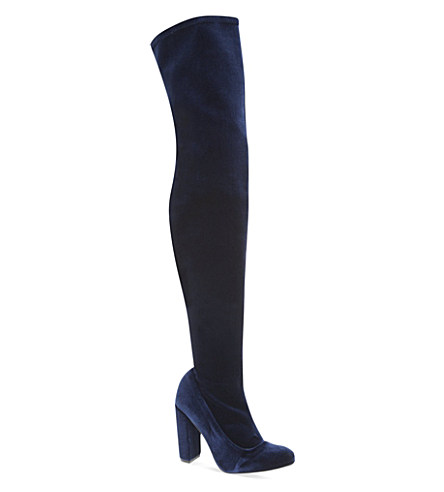Her luxurious velvet boots have a 4″ heel.