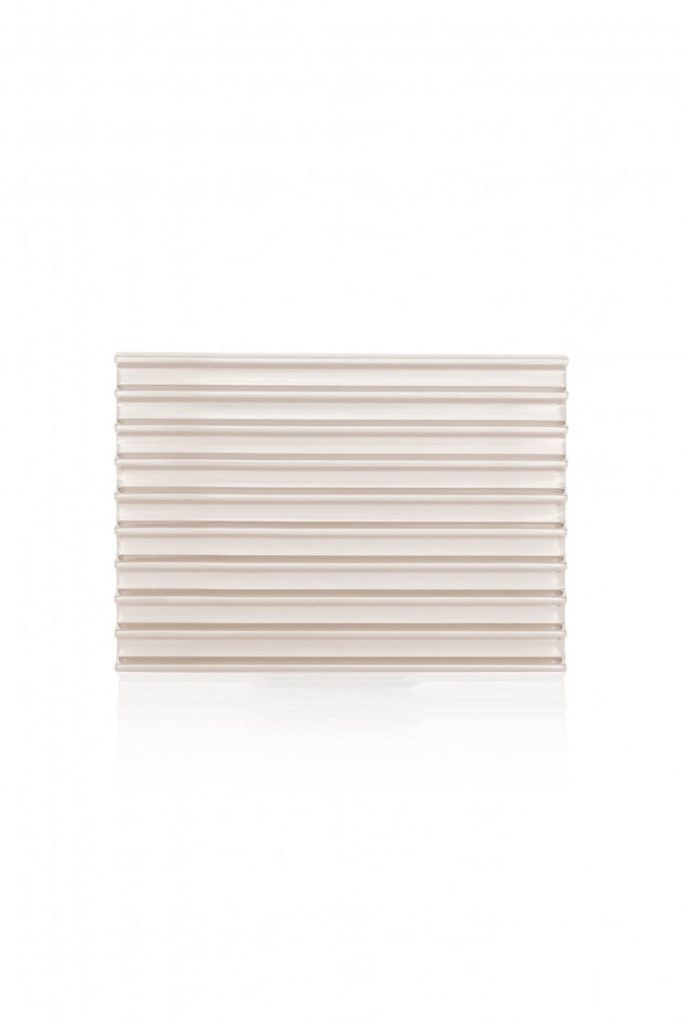 Her silver brass metal clutch was inspired by the 60’s minimalist architectural movement.