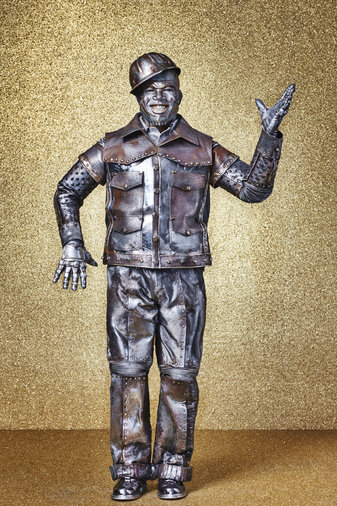 The Tin-man had a dapper leather look in his patchwork made to resemble metal.