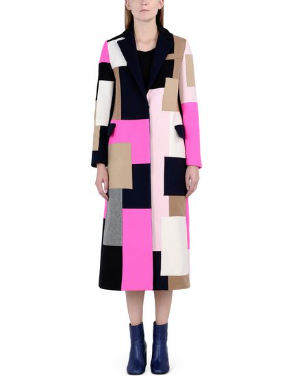 Her sold out statement coat boast tones of pink, black, navy, tan and gray.
