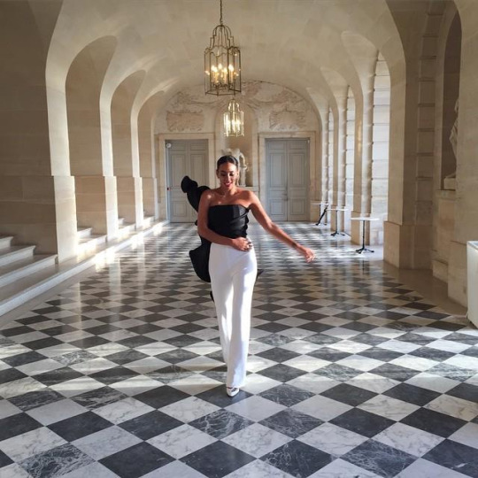 Back in May, the naturalista attended an event at Versailles as she donned a black ruffled strapless top from Stephane Rolland‘s Spring 2015 collection and white wide leg trousers. The B&W color palette gives this ensemble a dose of classic flair but the structured ruffle also adds a bit of personality to Solo’s ‘fit.