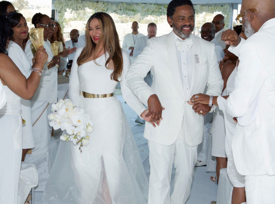 8) Tina Knowles Lawson in Romona Keveza Spring 2015 Wedding Dress