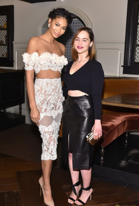 Whatever your stance is on the revival of the crop top, just know that for right now, it’s here to stay.  And Chanel Iman personified why.  The supermodel was la belle du jour at W Magazine’s It Girl Luncheon in a two-piece lace and pearl crop top and pencil skirt set by Australian designer, Jaime Lee Major.
