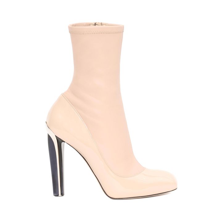 Her boots have a 4″ black transparent perspex heel with a silver finish on the hardware.