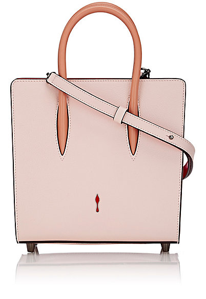 Christian Louboutin’s Ballerina (pink) grained leather Paloma small tote bag is designed with spiked-stud-embellished patent leather sides.