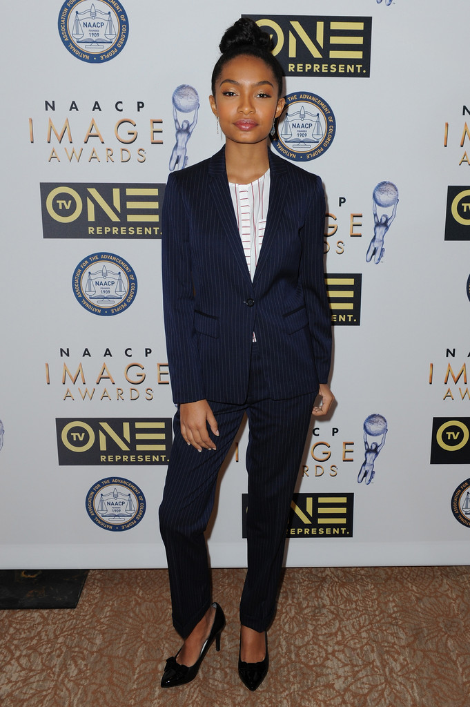Yara Shahidi was suited up in navy Brooks Brothers. Simple and chic, no?