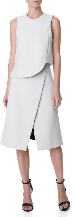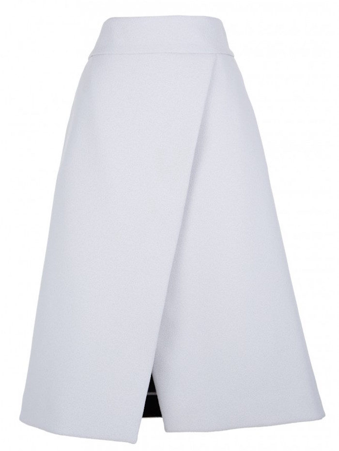 Her high waisted crepe skirt is partially lined and creates a flatter A-line silhouette.