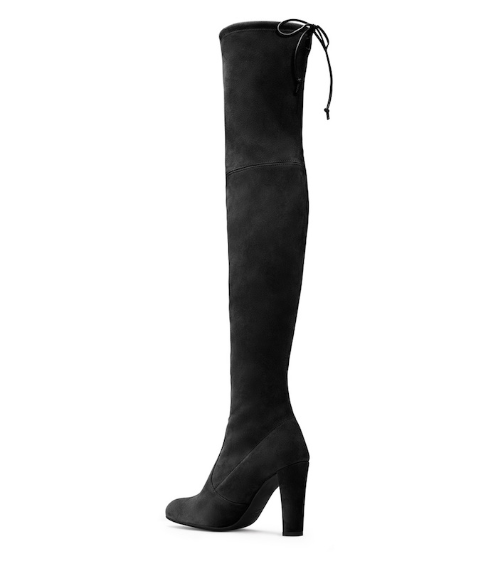 Her black suede over-the-knee boot has a tie back and has a flexible rubber sole to ensure a great.
