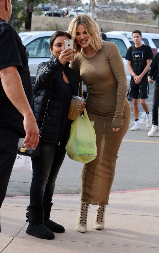 Khloe Kardashian was spotted at the Health Nut with her sisters in a $410 Faith Connexion Ribbed Long Sleeve Cotton Dress and $1,185 Balenciaga Studded Side Zip Ankle Booties: