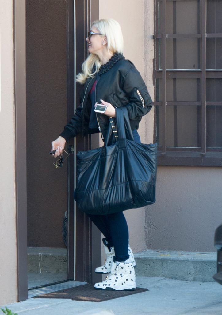 Gwen Stefani was spotted out and about in LA in a pair of $225 Melody Ehsani x Reebok Polka Dot Blacktop Pump Sneakers: