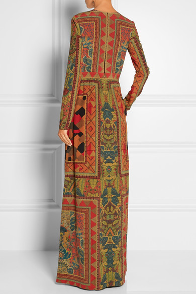 Combining intricate floral and geometric prints, this floor-grazing gown has been crafted in Italy from silk-crepe.