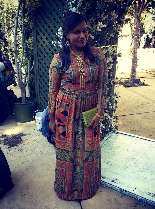 Mindy Kaling went bold and beautiful on the ‘Gram in a statement $1,240 Etro Graphic Printed Silk Crepe Long Sleeve Gown: