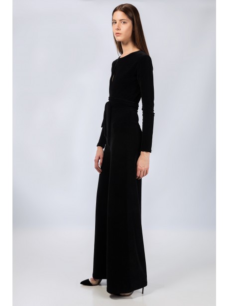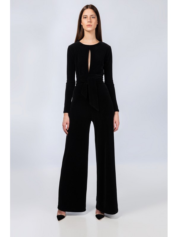 Her jumpsuit is fashioned out of form fitting material.