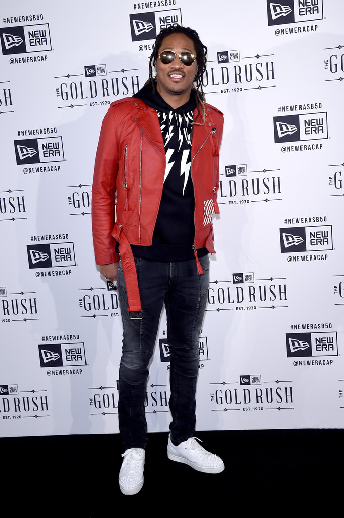 Future went bold in a $2,253 Off-White Striped Detail Biker Jacket and a $543 Neil Barrett Lightning Bolt Hoodie. I actually need this hoodie…