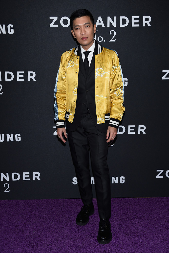 Bryan Boy popped by in a Valentino varsity jacket.