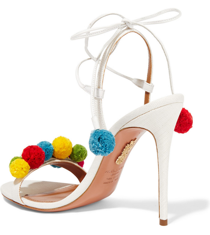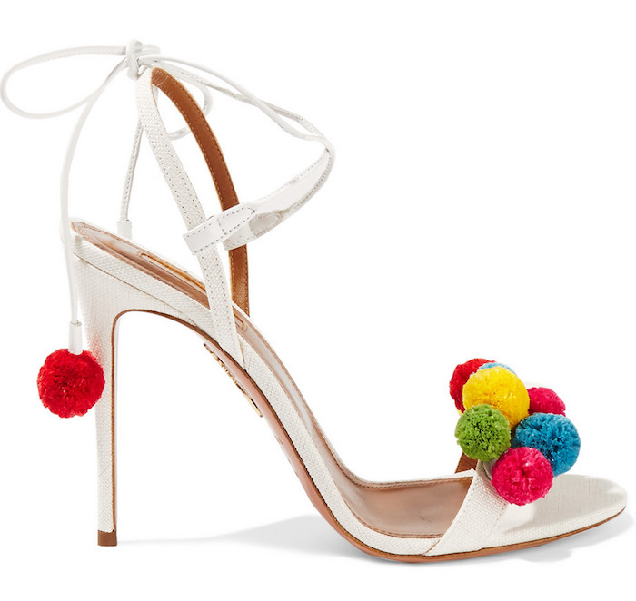 Crafted from woven white raffia her stompers are decorated with a colorful array of pompoms across the toes. iSwoon!