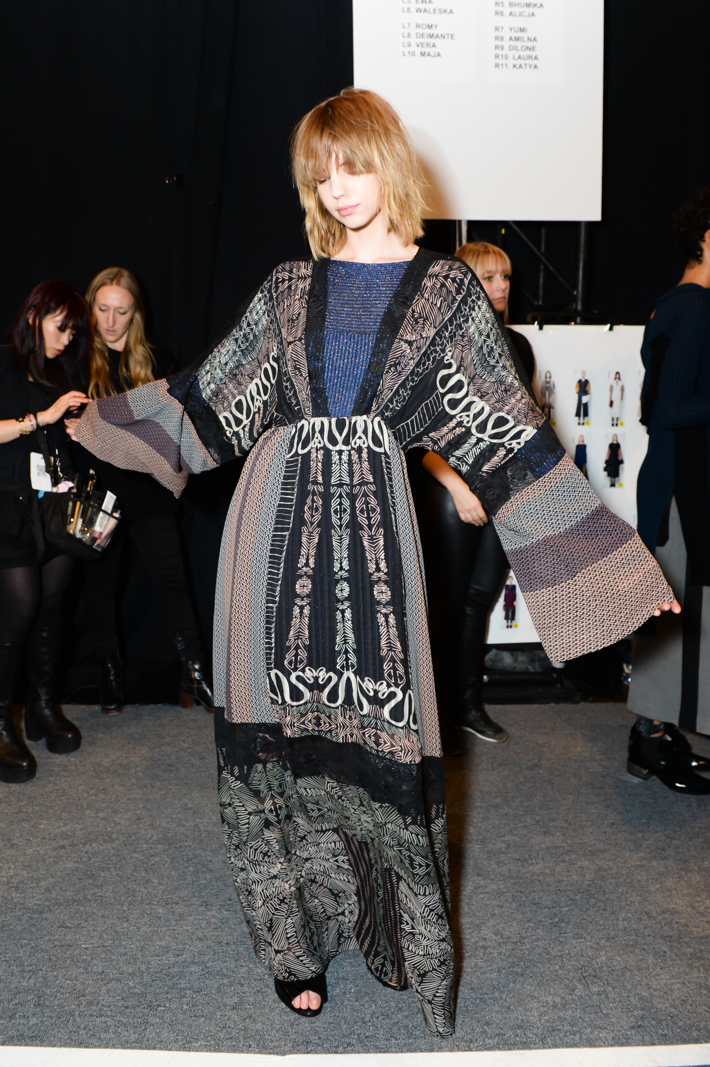The show was definitely centered around the idea of an ‘artistic’ muse; whimsical yet very intentional with her style of dress. As someone who loves color and shimmer, I enjoyed looking down the runway and backstage at the latest collection’s signature looks, clad in rich colors, textures, palettes and material.