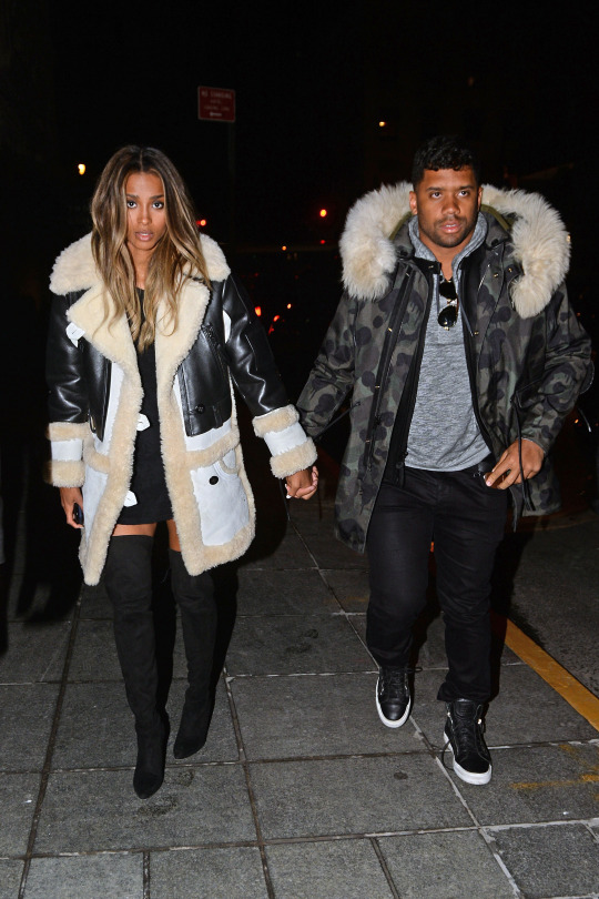 Ciara was spied out in NYC with beau Russell Wilson in a $2,495 Biker Sheepskin Coat by Coach: