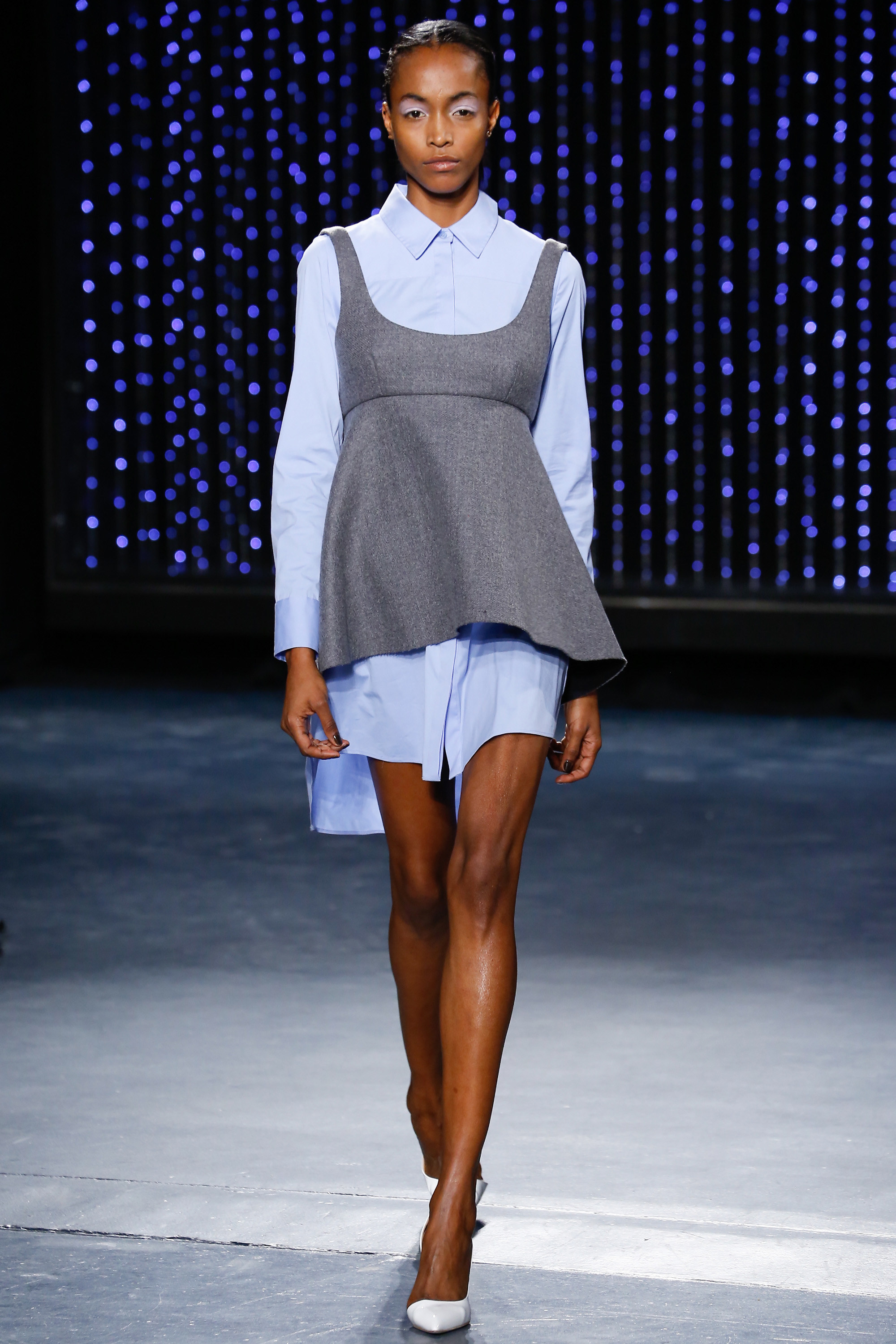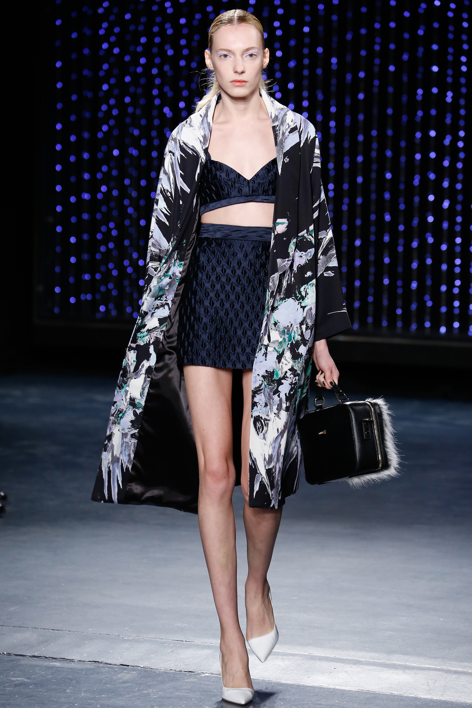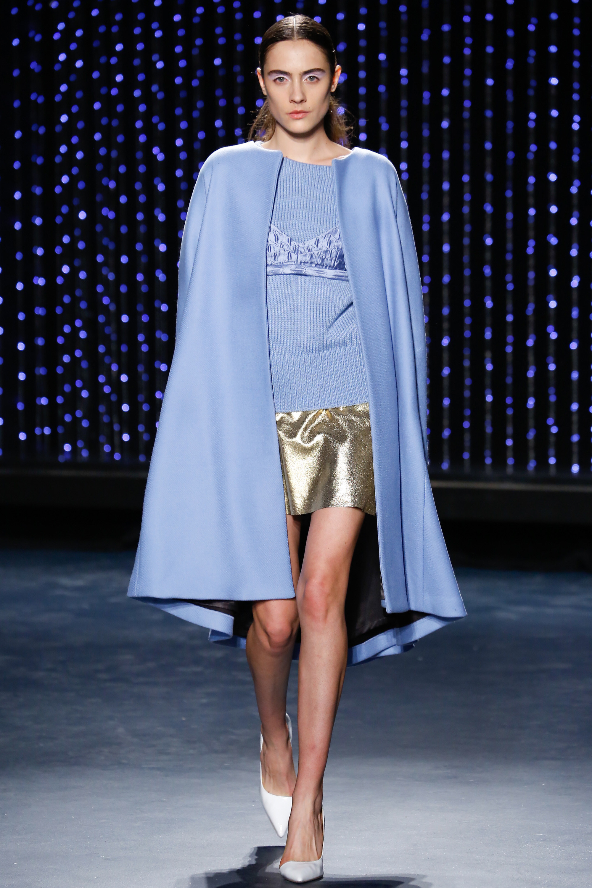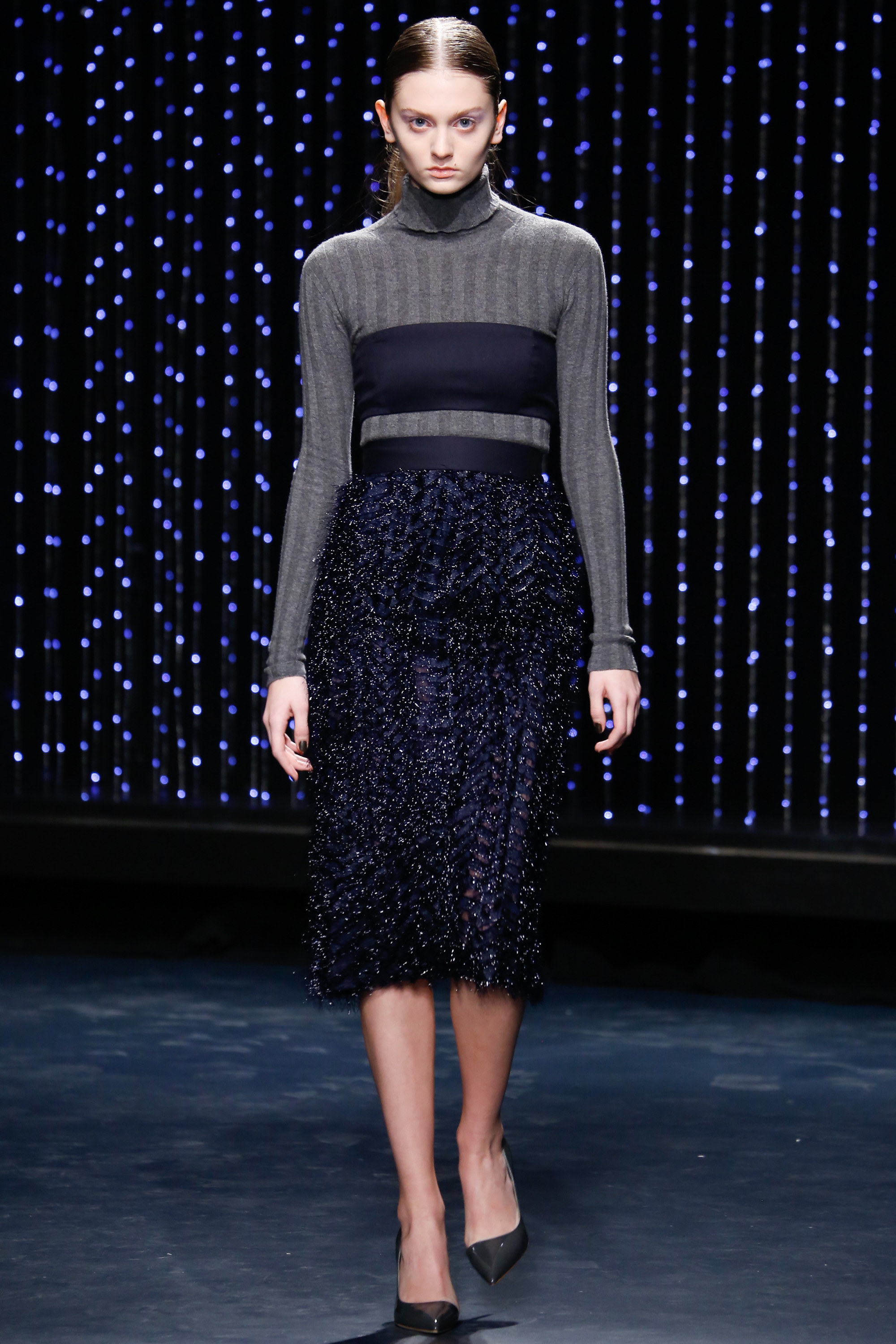 Upon entering Pier 59 Studios, I was taken back by the chicness of the venue and the beauty of the set. The ceiling above the catwalk was (literally) dripping with blue flowing lights and the picturesque attendees just added to the overall sophistication of the show’s ambiance.
