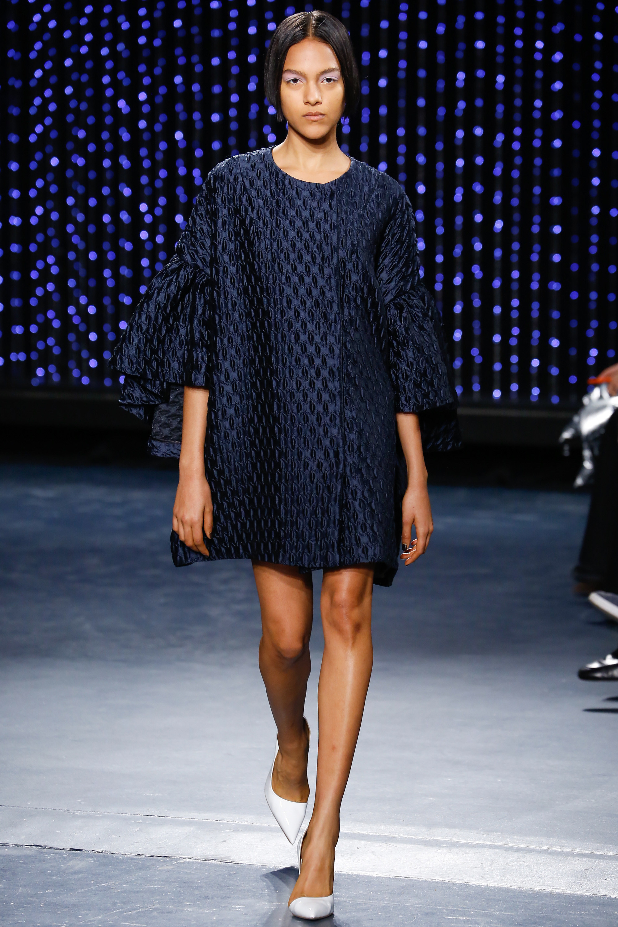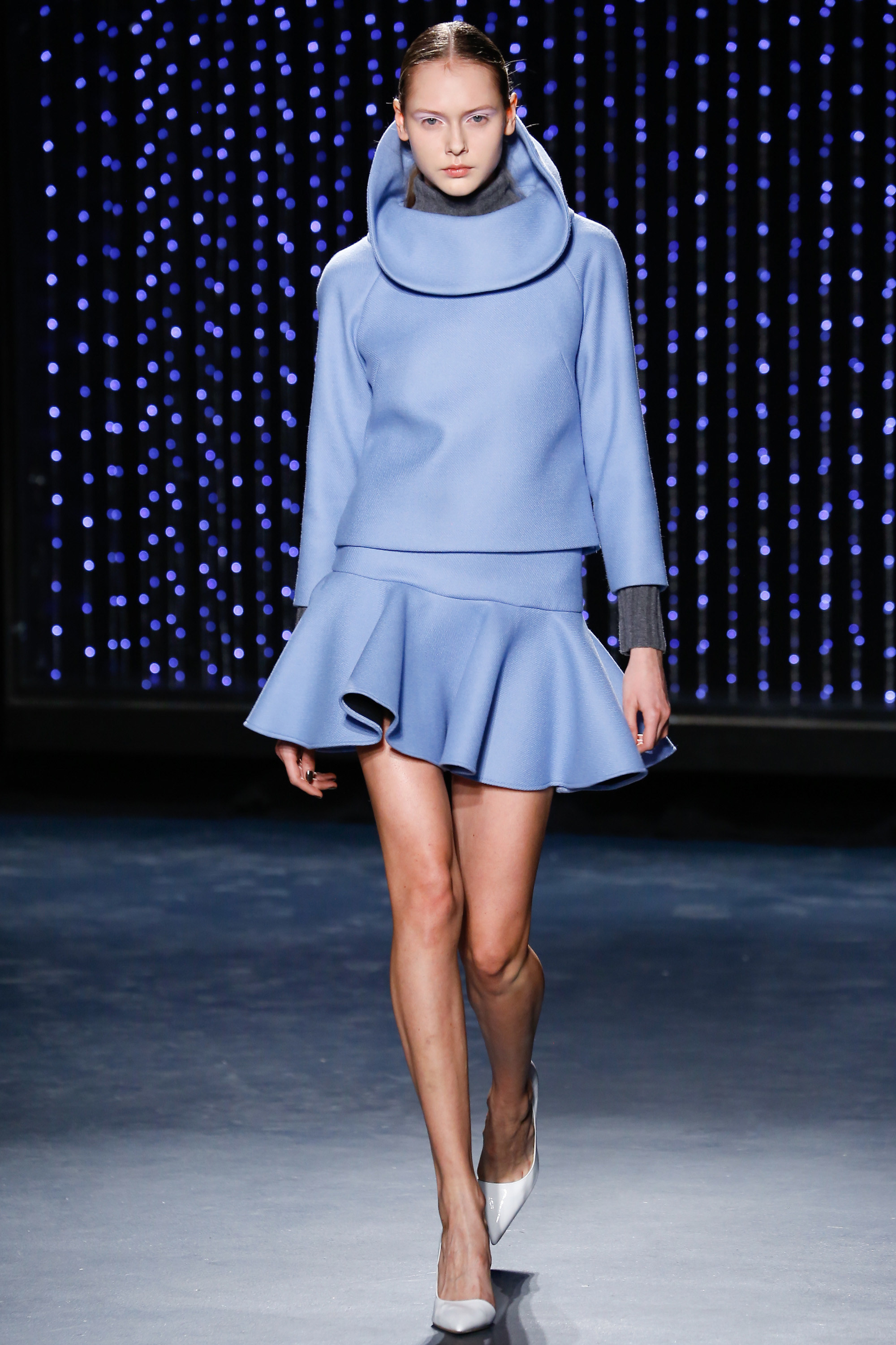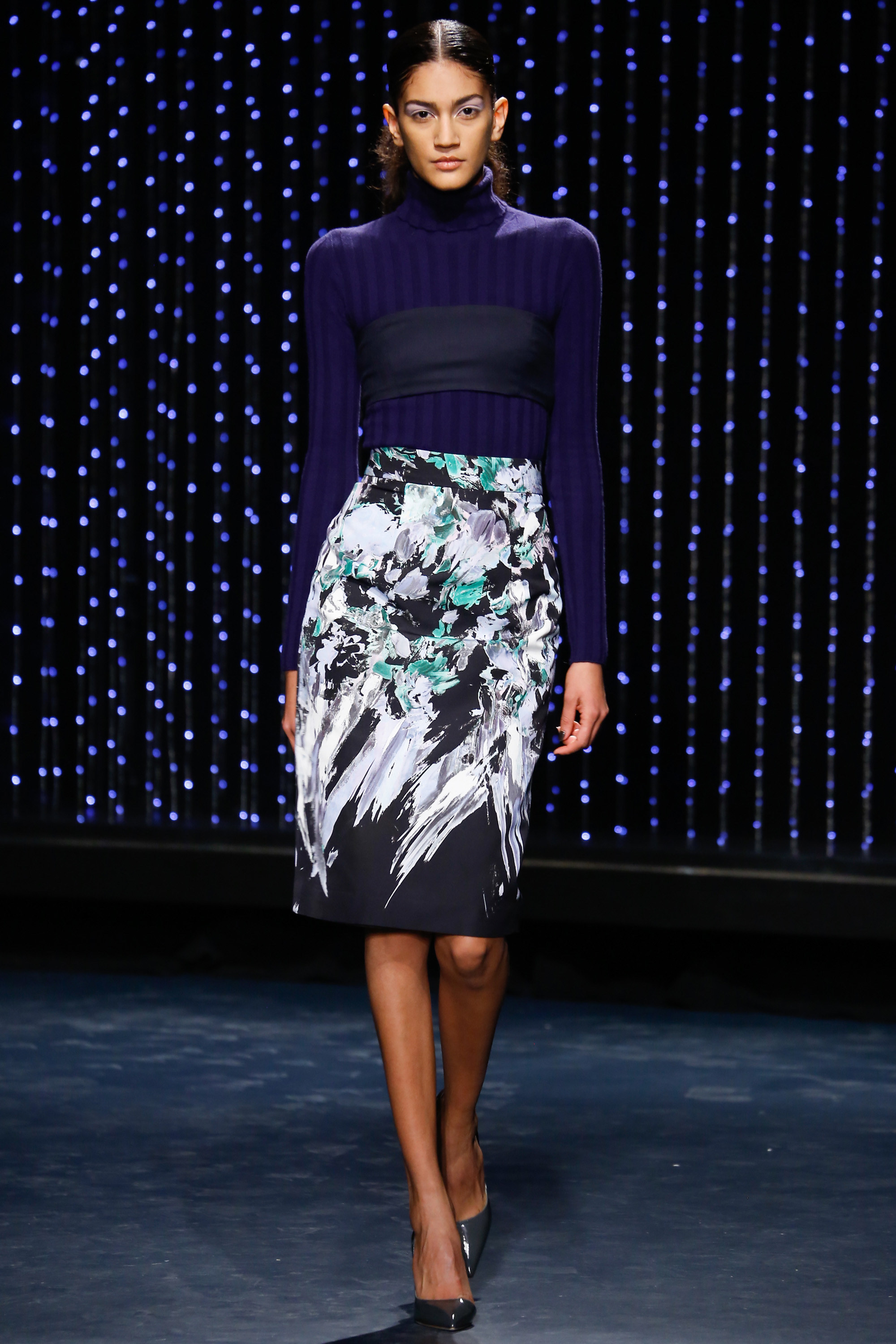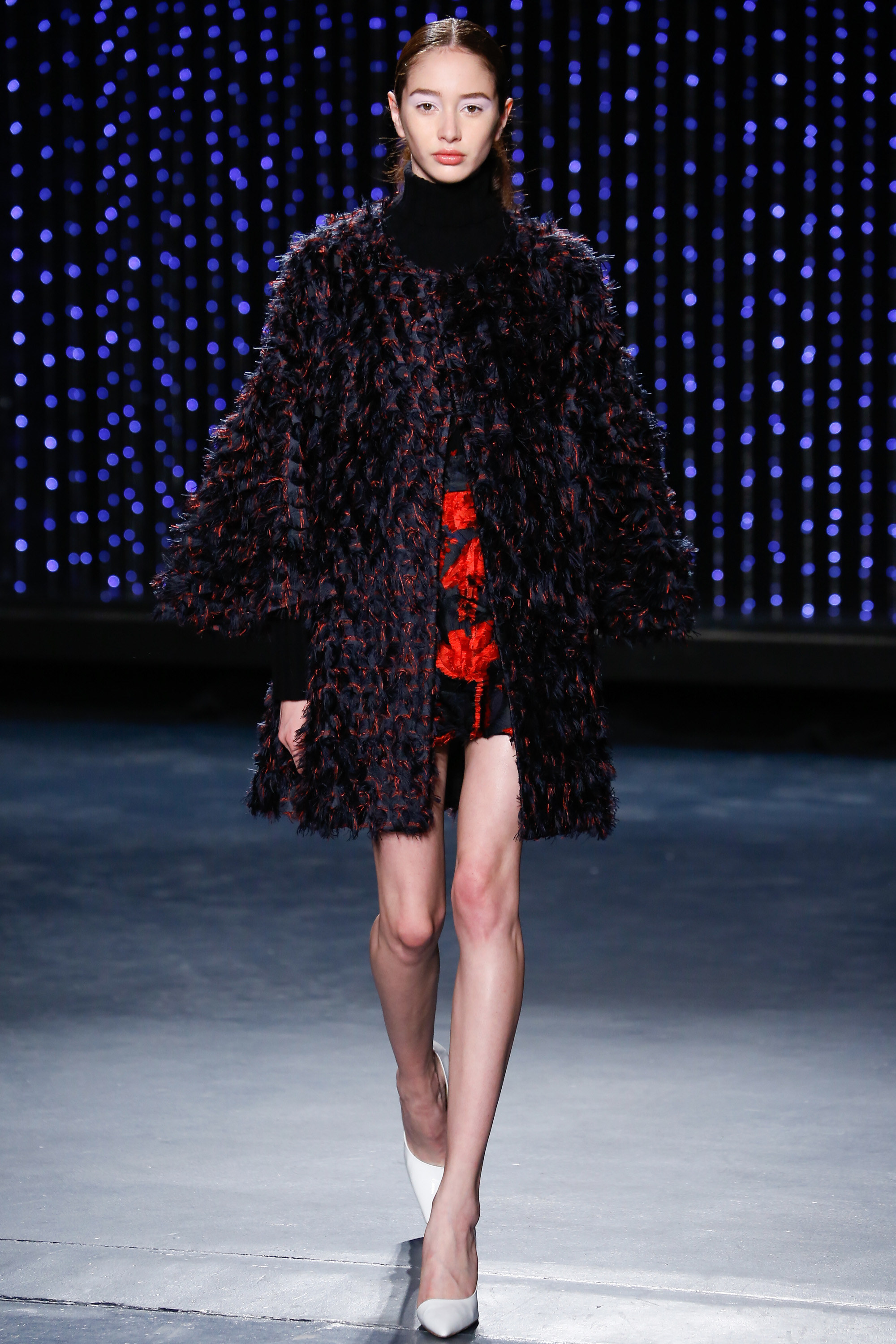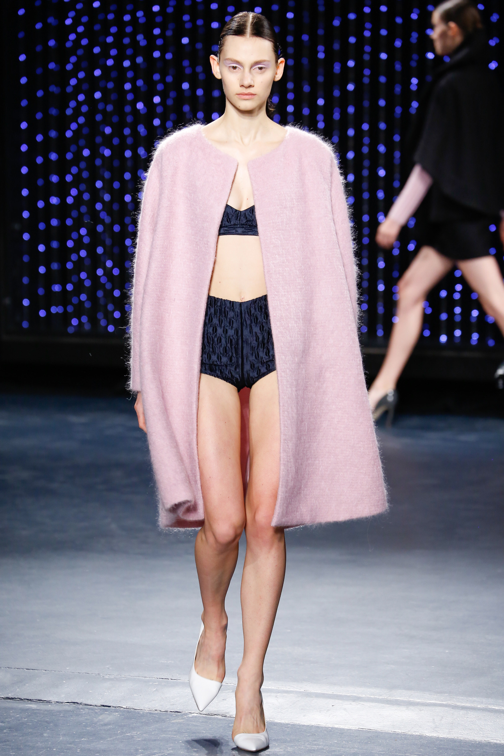 Upon entering Pier 59 Studios, I was taken back by the chicness of the venue and the beauty of the set. The ceiling above the catwalk was (literally) dripping with blue flowing lights and the picturesque attendees just added to the overall sophistication of the show’s ambiance.