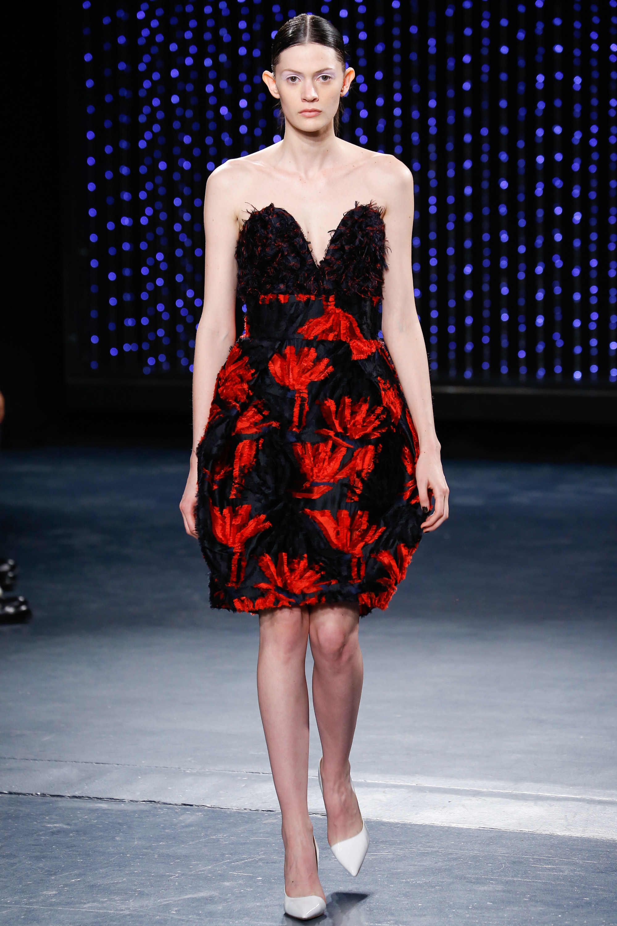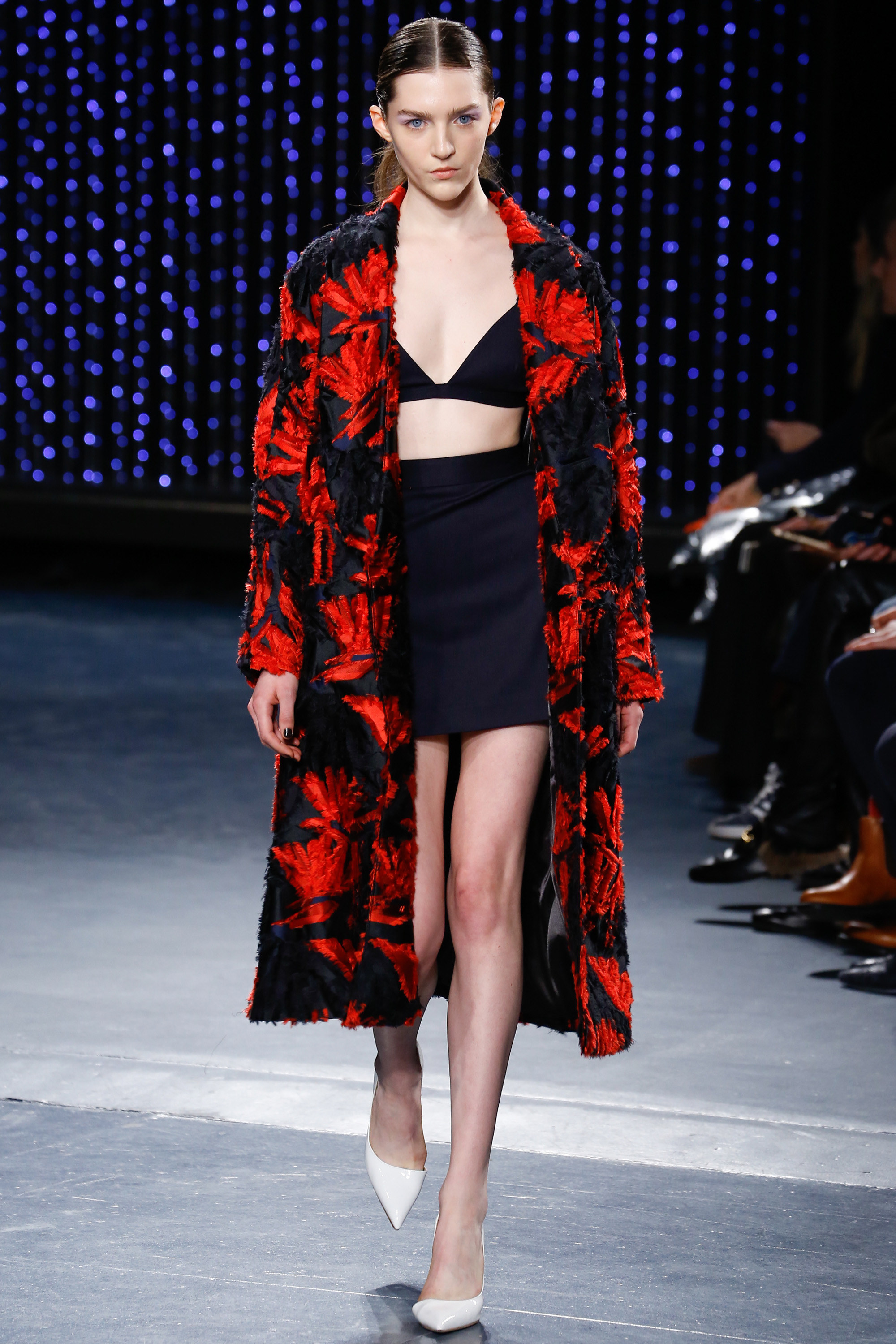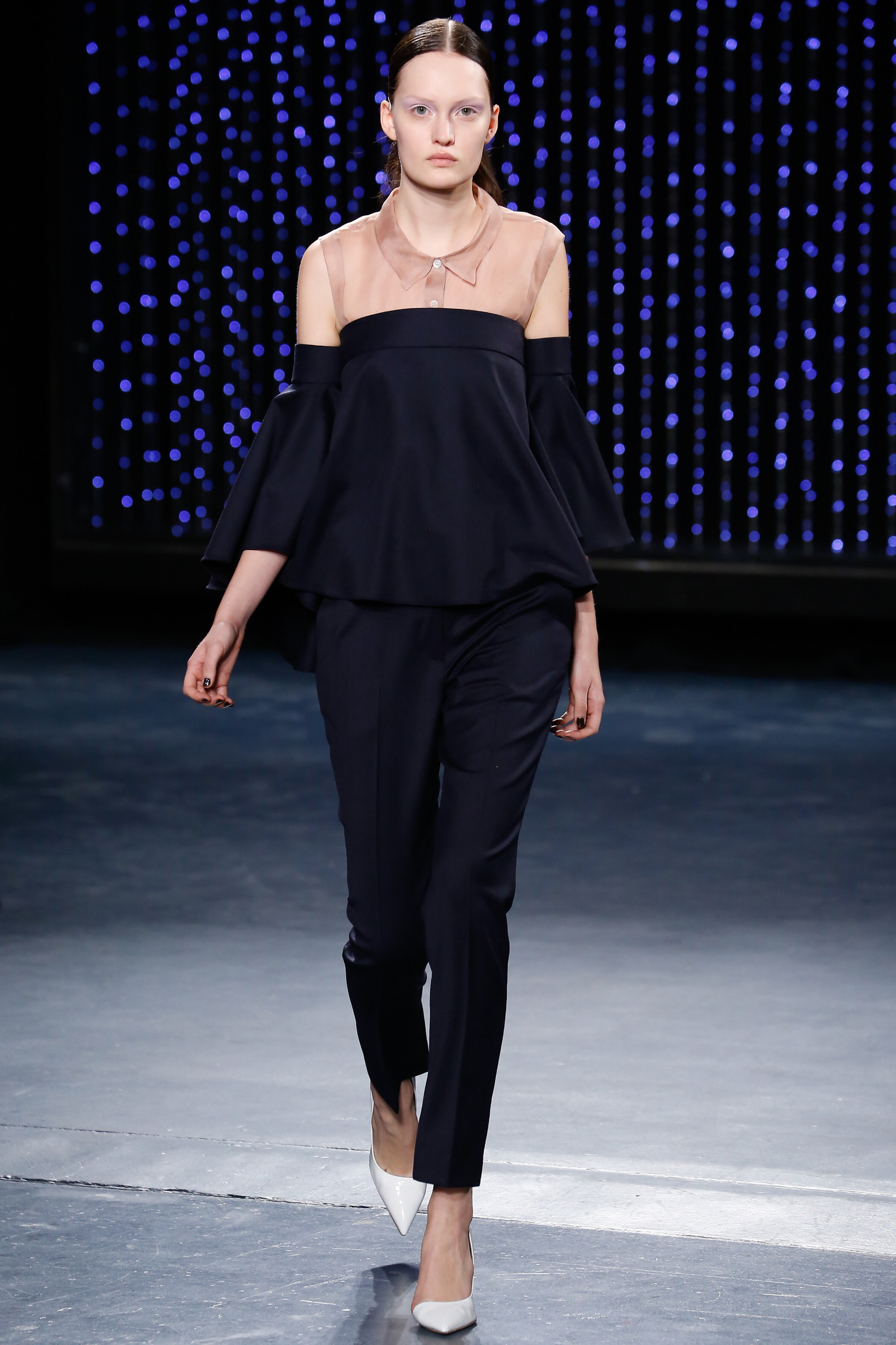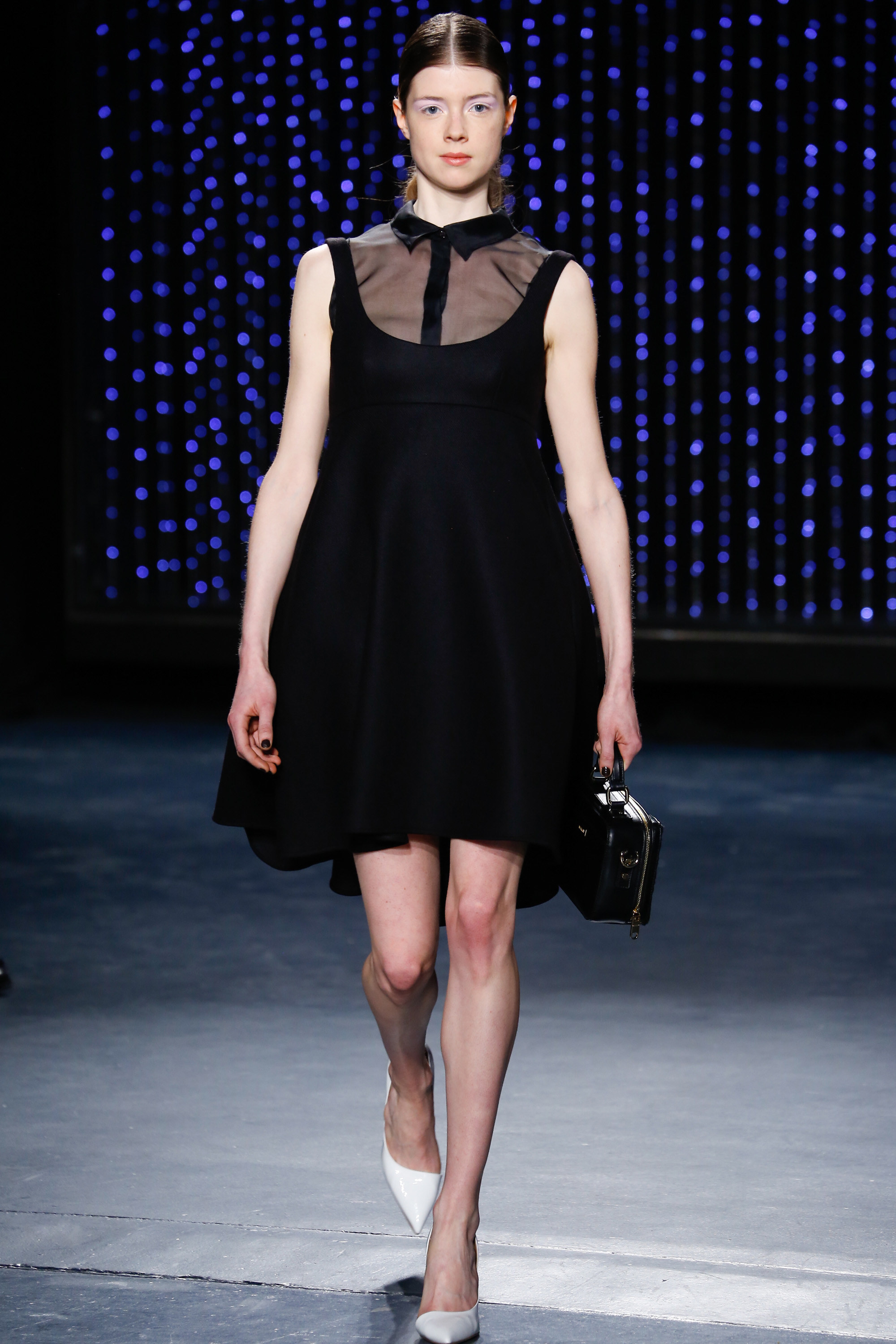 Upon entering Pier 59 Studios, I was taken back by the chicness of the venue and the beauty of the set. The ceiling above the catwalk was (literally) dripping with blue flowing lights and the picturesque attendees just added to the overall sophistication of the show’s ambiance.
