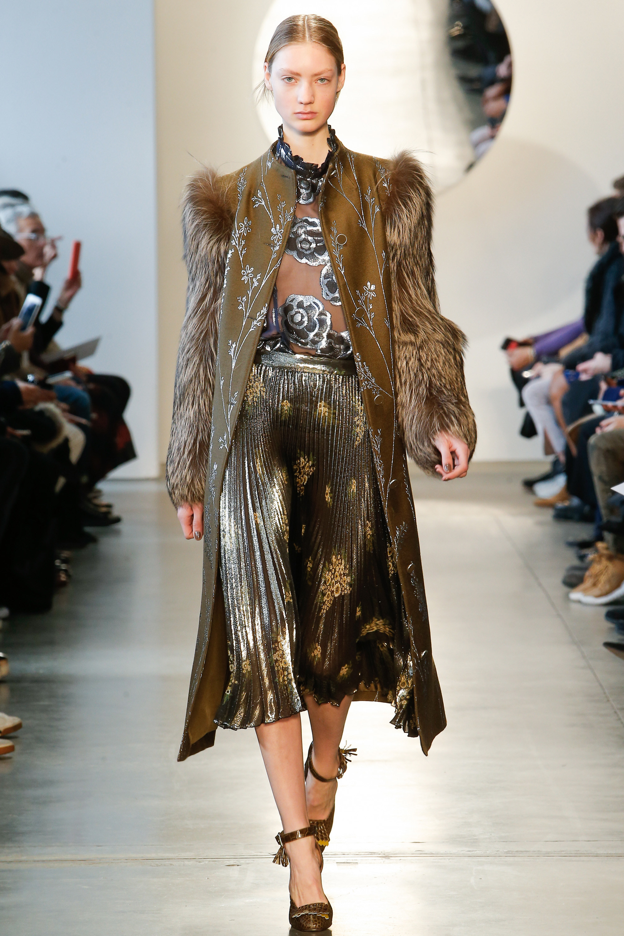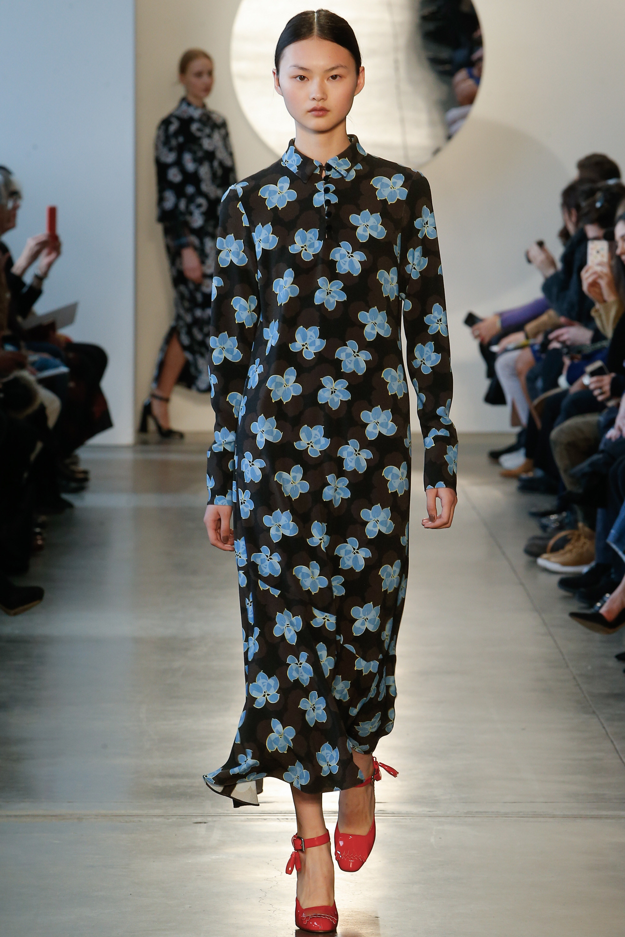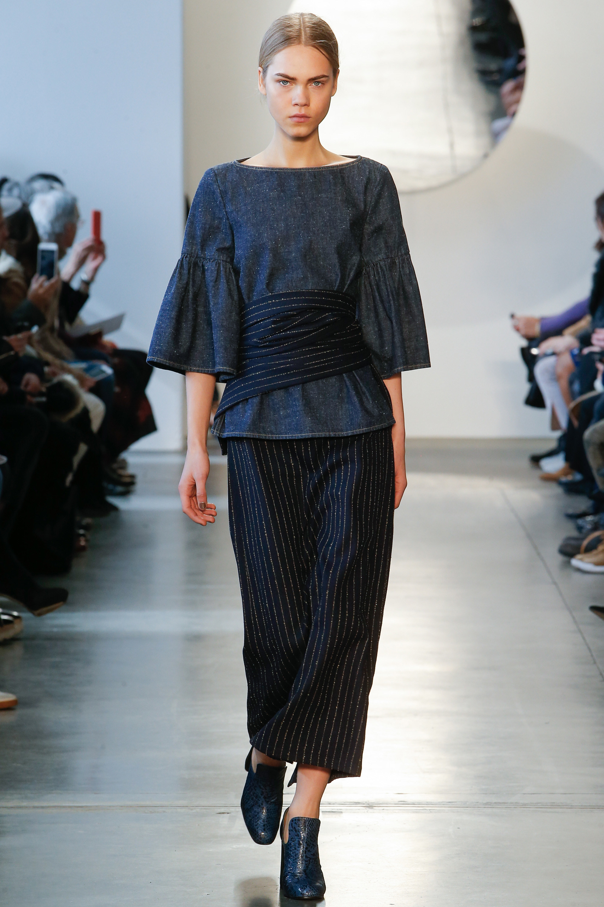 I admit, I can’t deny a good pinstripe! And, Suno certainly delivered. Models showcased innovative ways to casually style this workwear print by adding wrap touches, playful bell sleeves and dark-hued florals. There was also an impressive amount of proportion play, layered ruffles and statement metallics.