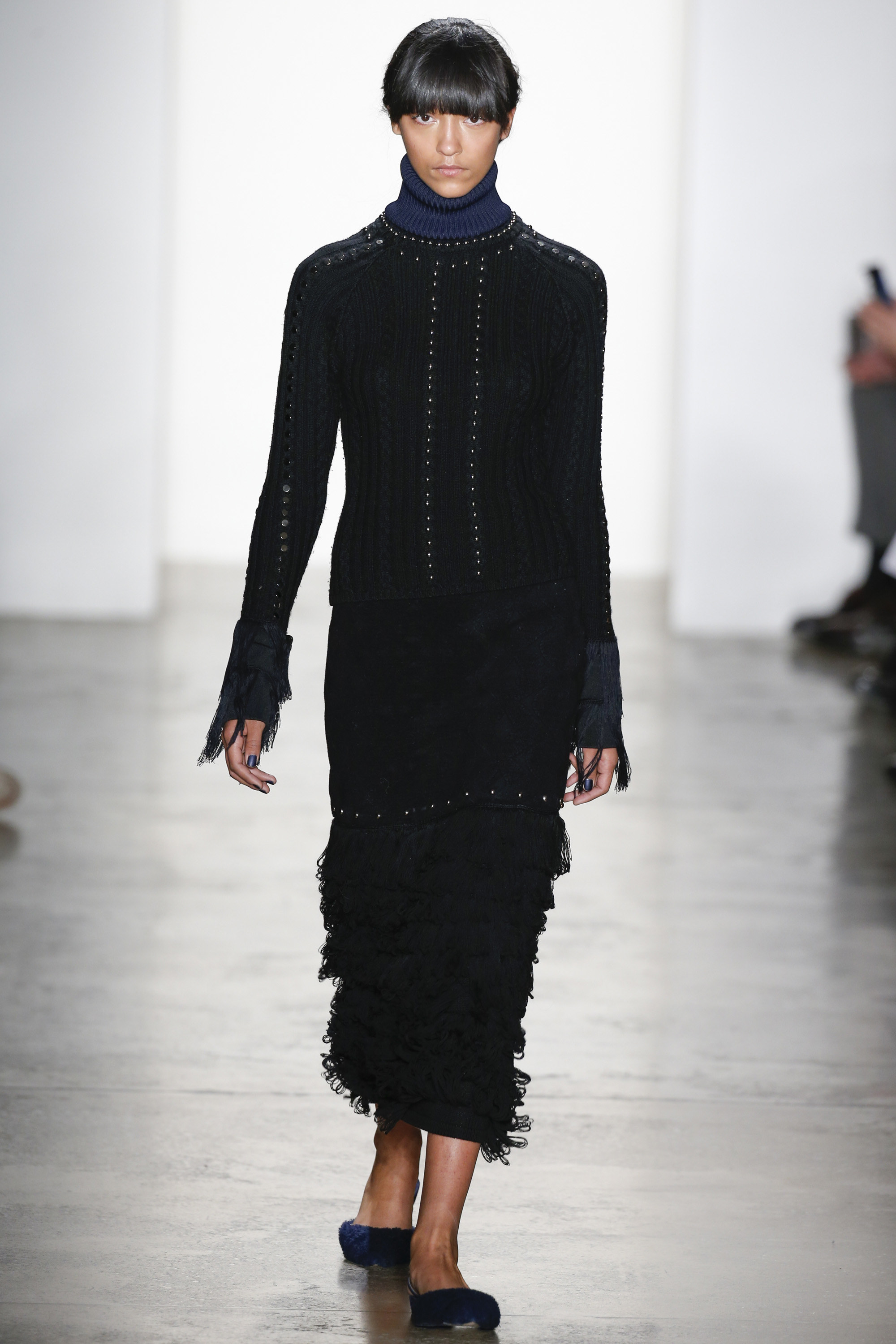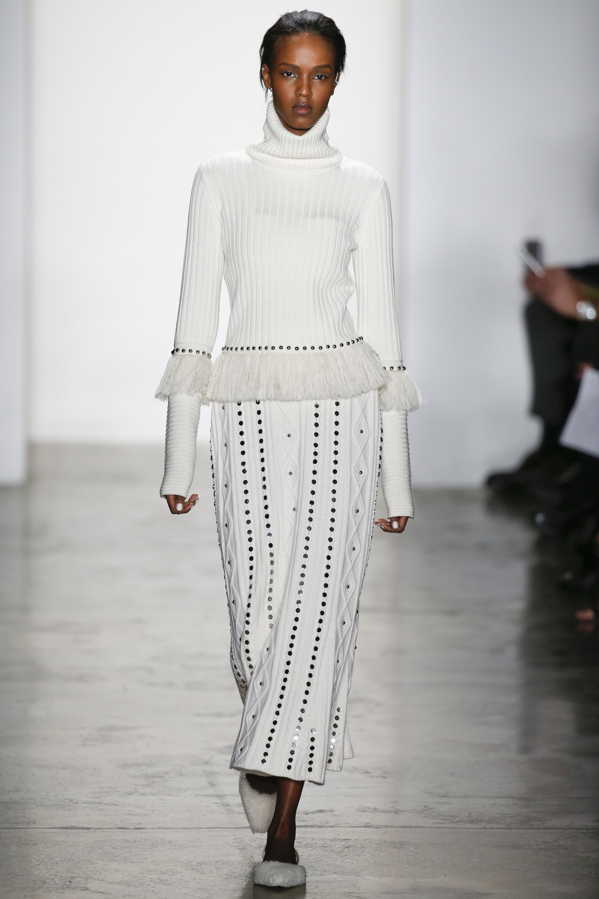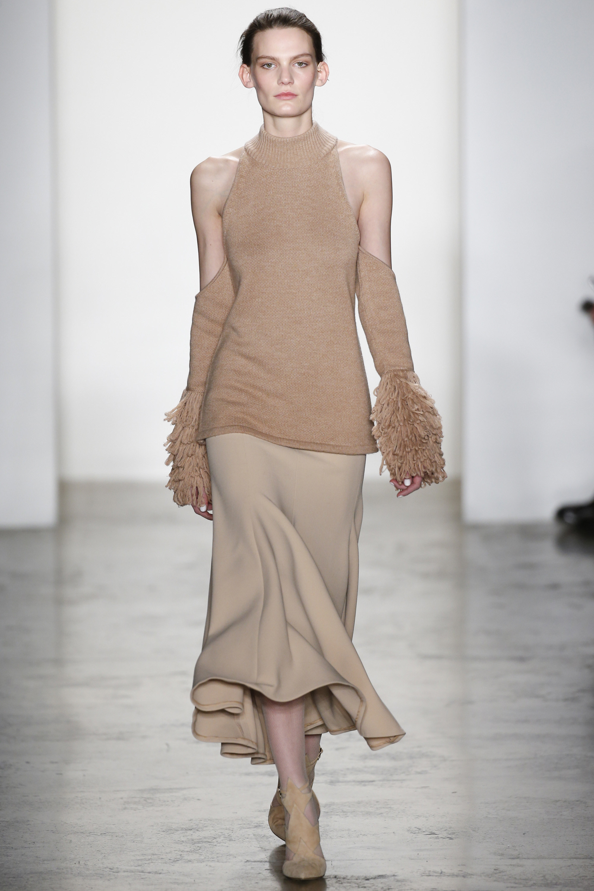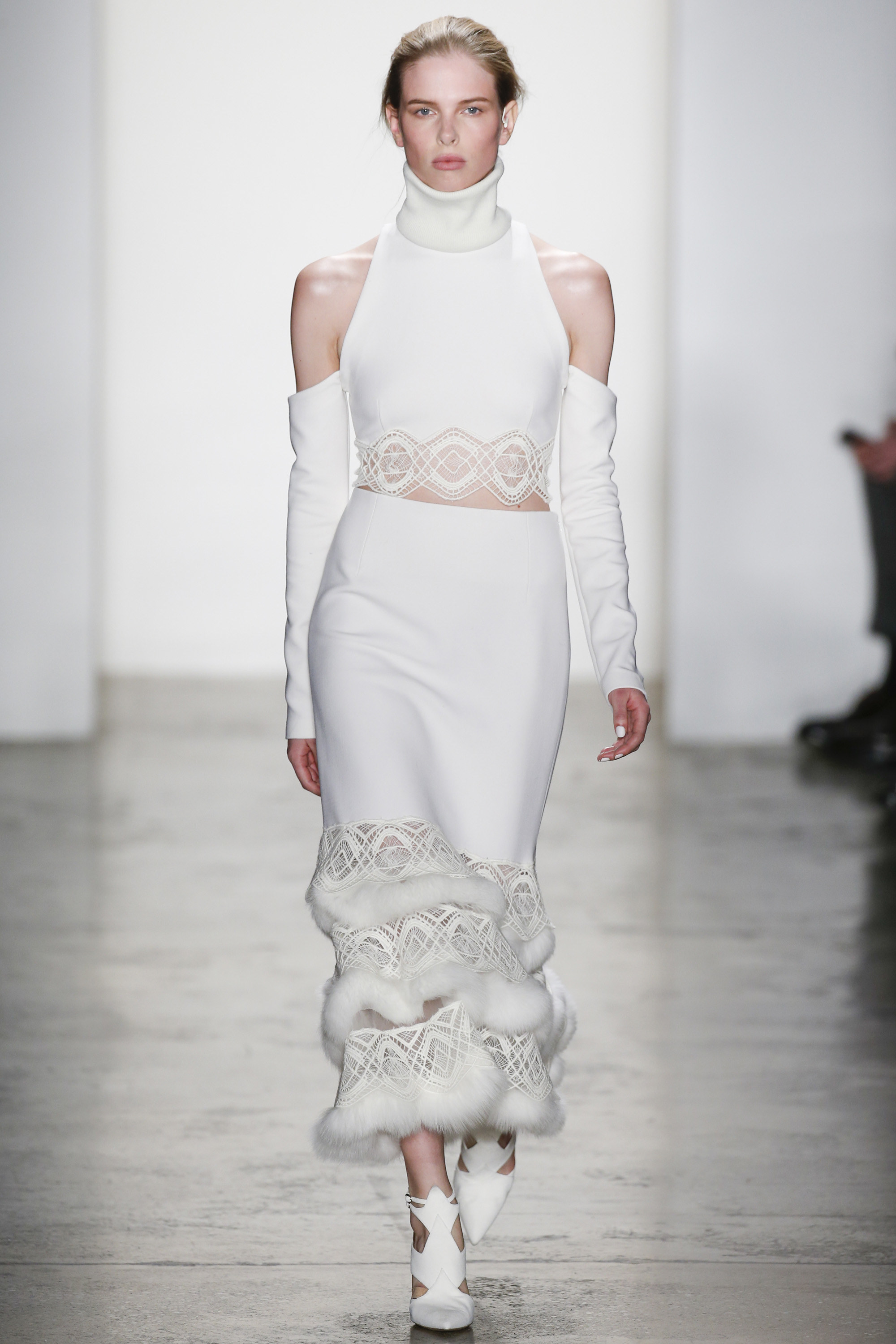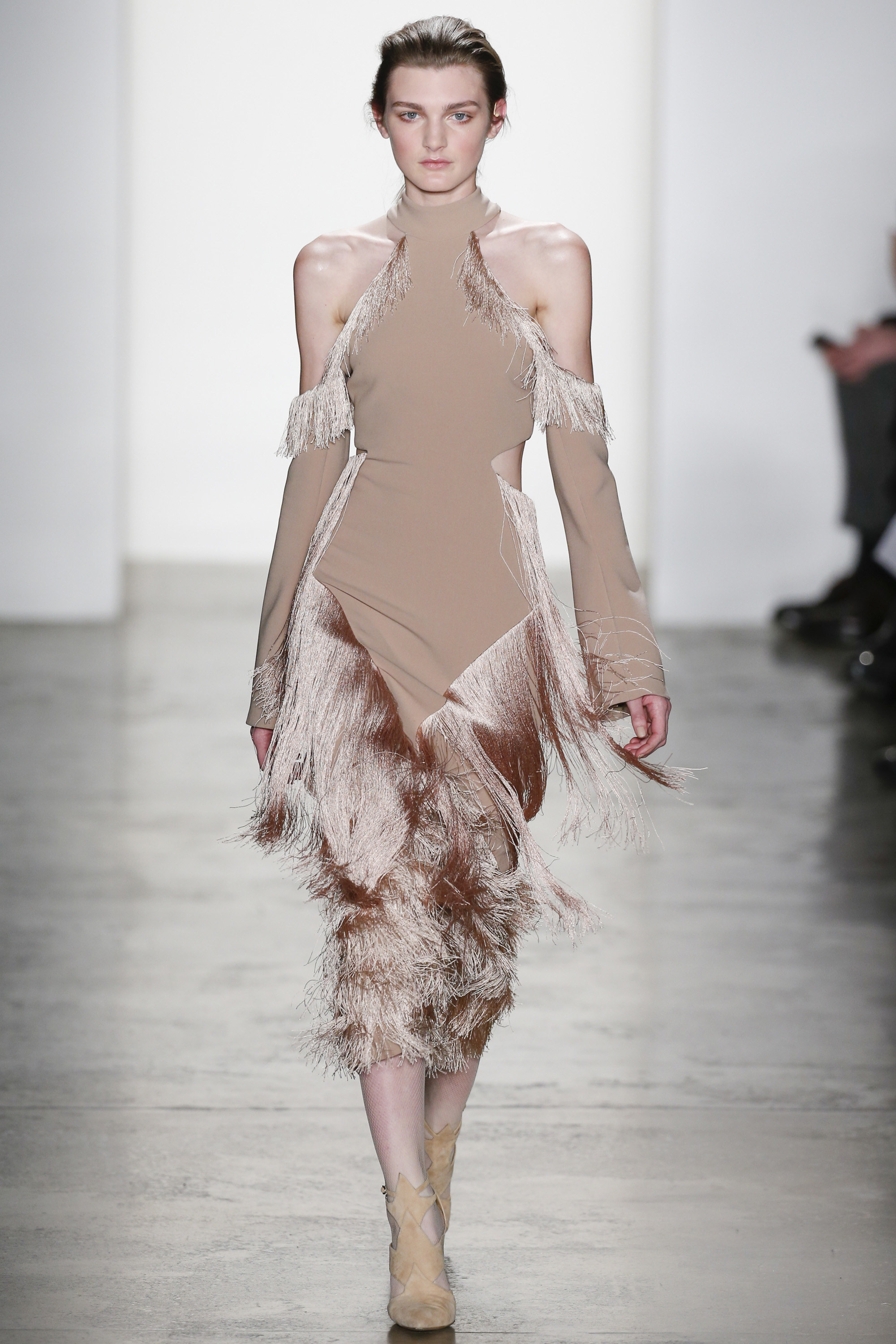 The designs from this fall collection are perfect for fashionistas who crave a bit of a sculptural influence within their wardrobe. All in all, each look tells a different story yet the theme remains consistent – Simkhai proves that a simple touch of glamour can help to alter an entire look. Whether it’s a fox fur or a gold silk slip dress, the elegance that oozes from these creations is unparalleled.