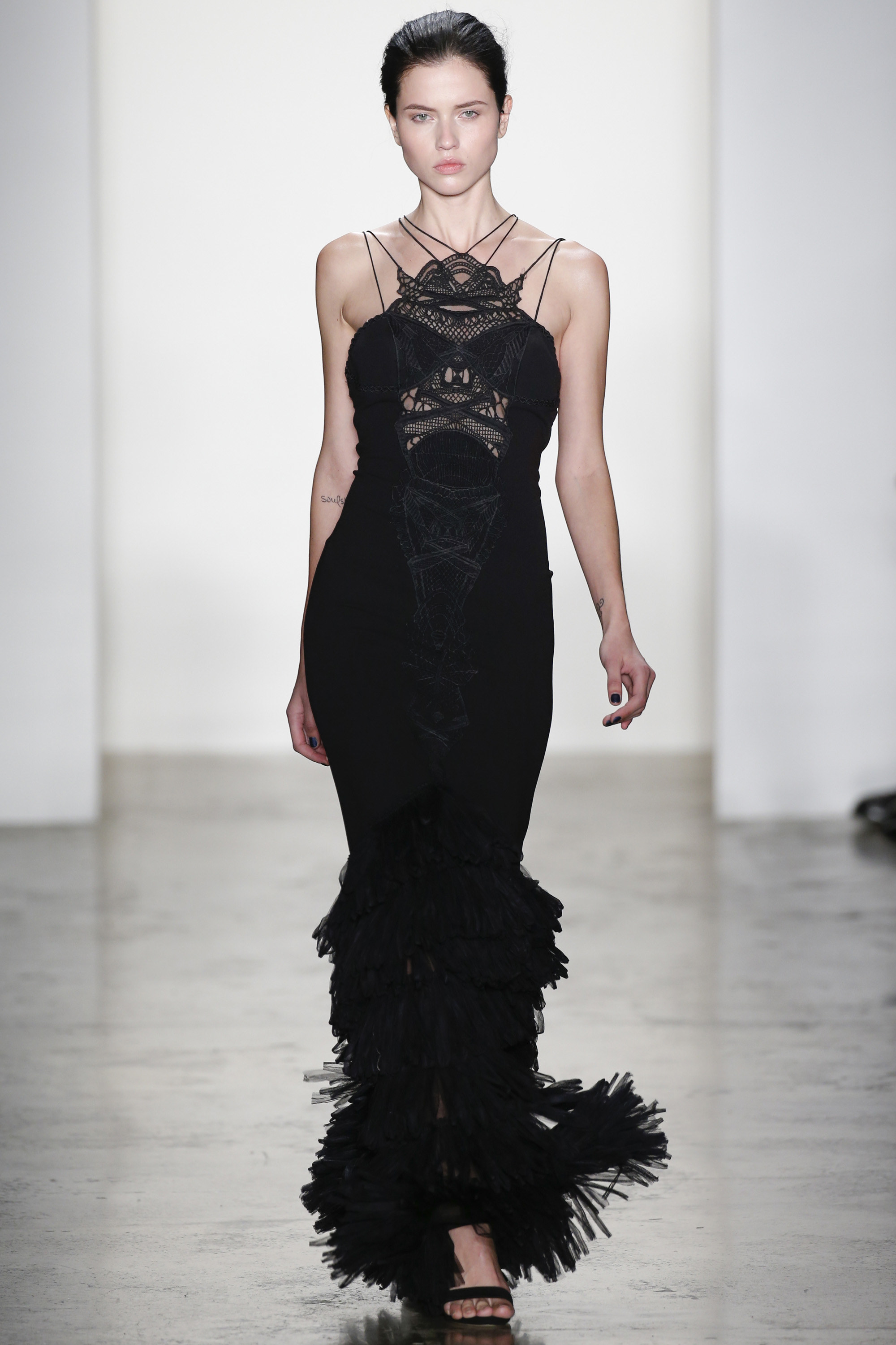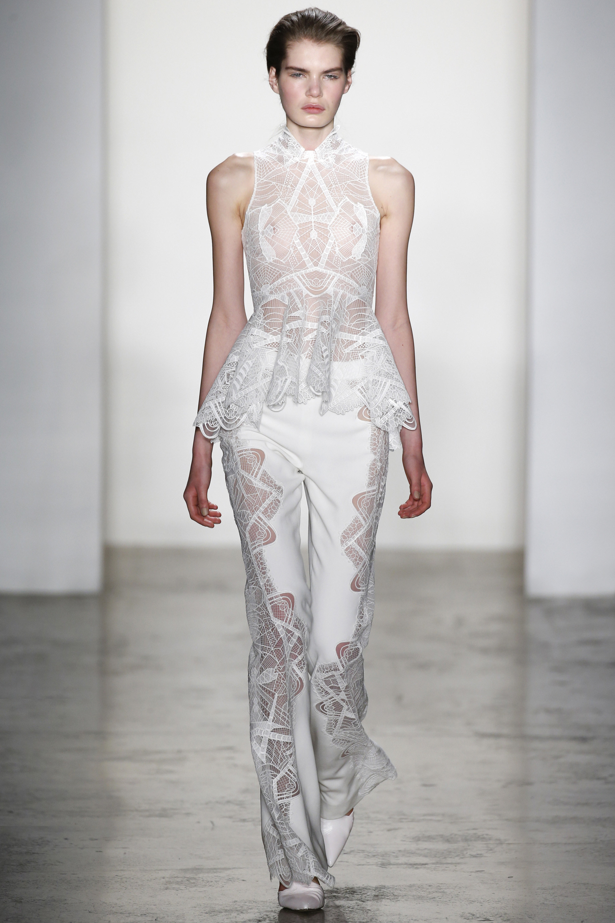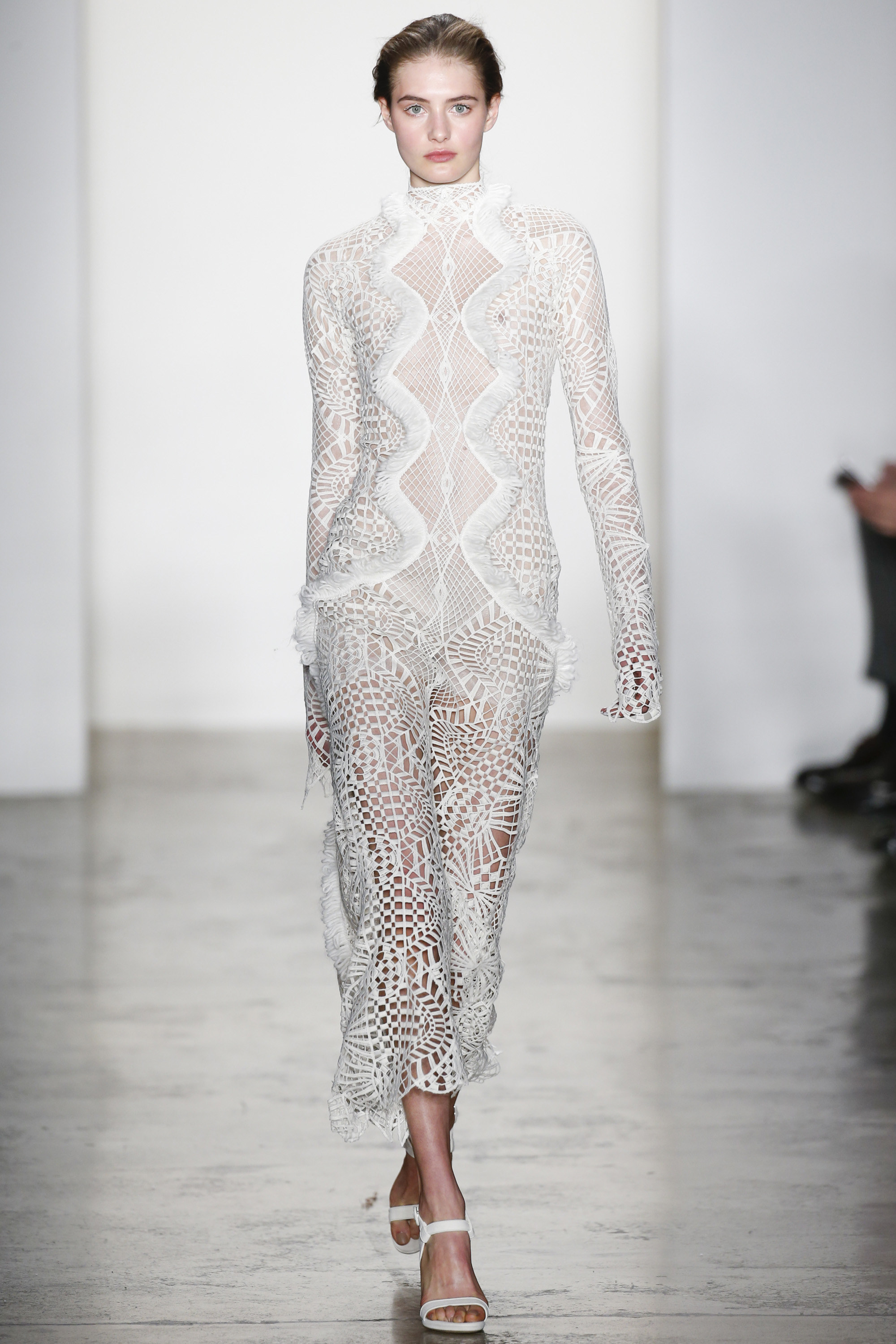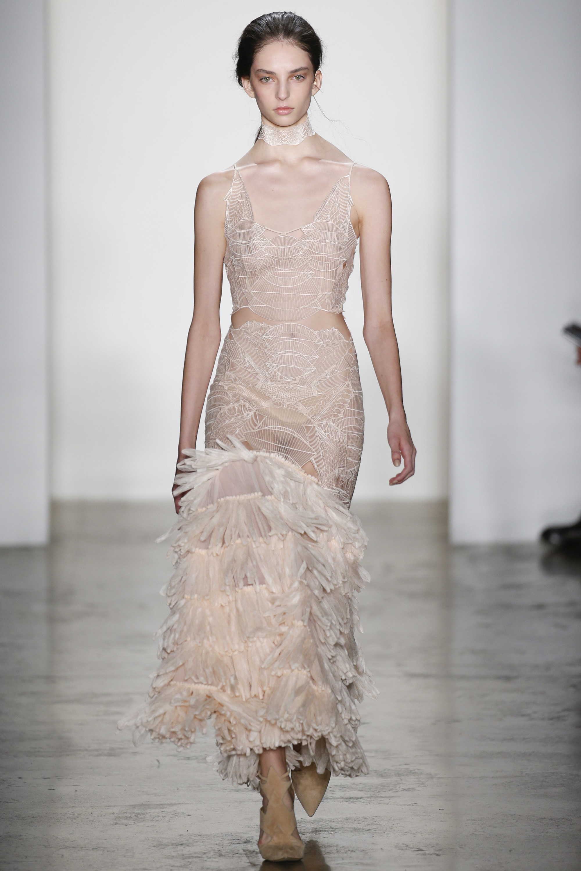 Although the platform for this collection rests upon neutral colors and sleek silhouettes, Simkhai effortlessly manages to keep his looks fresh and unpredictable. His attention to detail is also apparent through his use of sultry features which include off-the-shoulder effects, plunging necklines and even sheer ensembles.