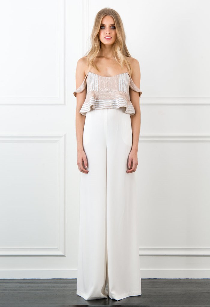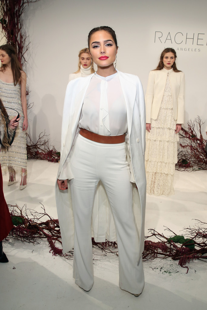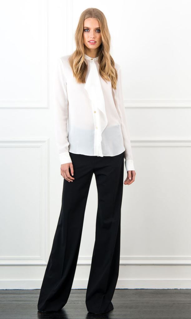 Olivia Culpo was so fresh and so clean at the Rachel Zoe Fall 2016 Presentation in a $325 Angelica Ruffle Front Blouse and $345 Gabby High Rise Wide Leg Pants from the brand: