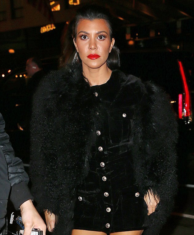 Kourtney Kardashian partied at Hunt & Fish Club in a $86 Storets Black Glam Nightlight Velvet Dress: