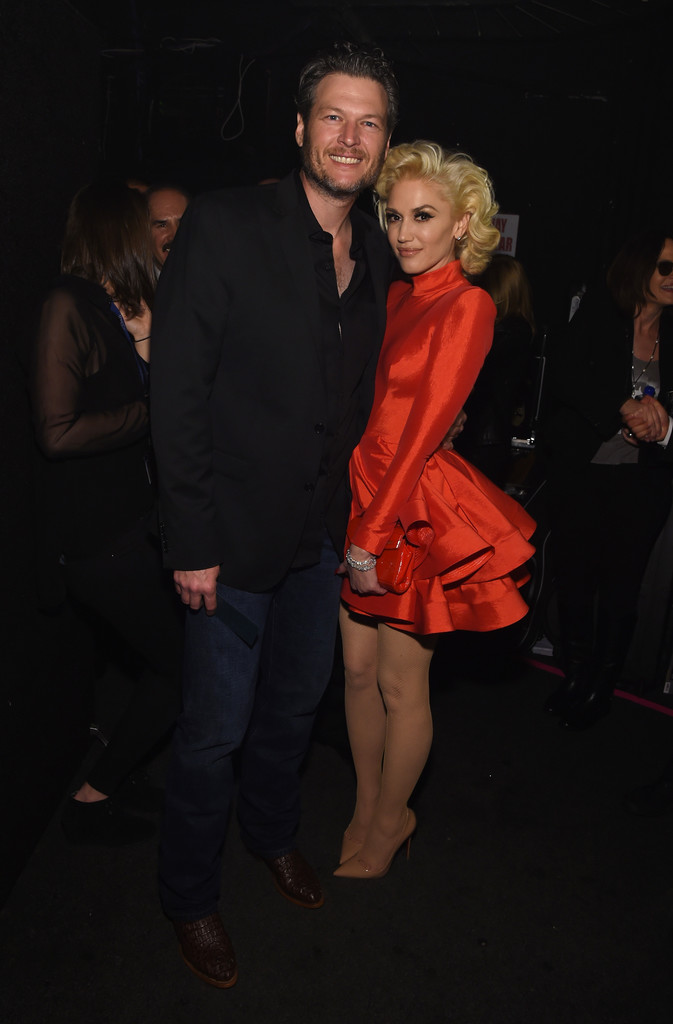 Gwen Stefani traded her signature red lips in favor of a lipstick red Michael Costello Mrs. Robinson cocktail.