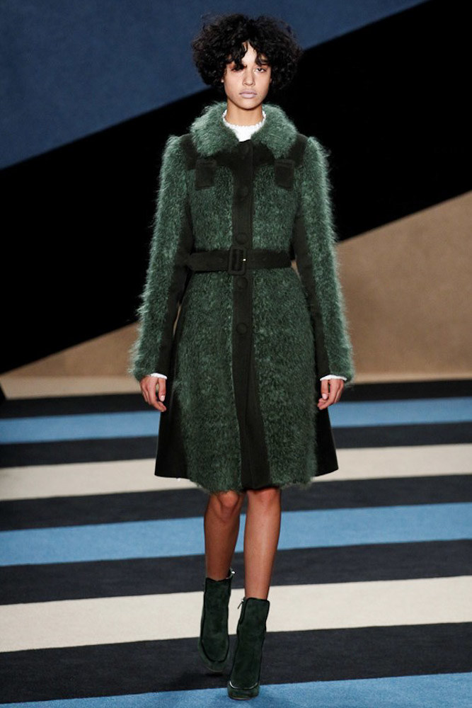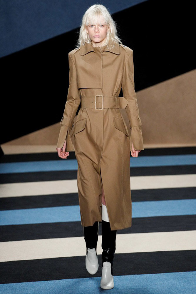 Of course the speciality of the brand, trench coats and peacoats , made an appearance; rich camels, soft browns and fuzzy greens embraced the collection as he did not shy away from color.