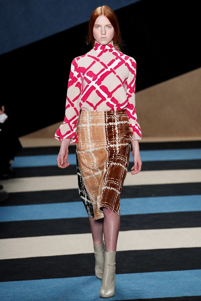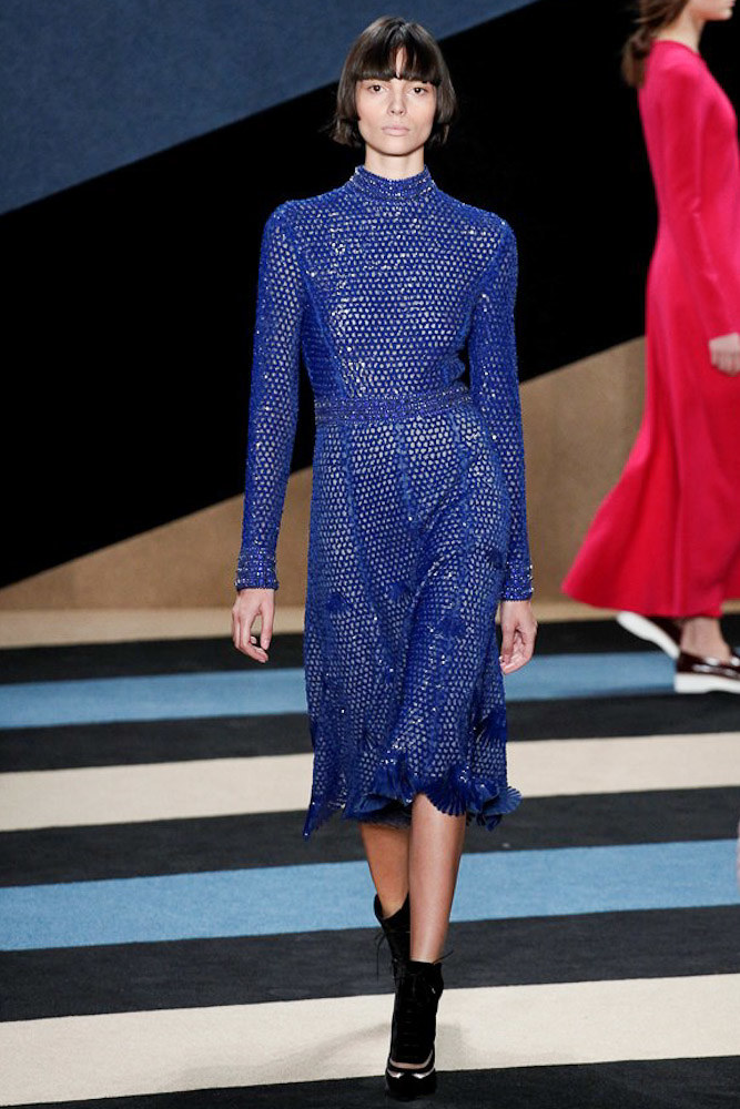 Bright, bold and beautiful colors came down the runway, encapsulating the beauty of the season while also showing his audiences that a little pop of color for Fall is not such a bad thing. The cohesiveness came with the spontanuity of the collection, presenting a sequined royal blue gown in the same presentation as varied tweed ensembles reminiscent of the 70s.