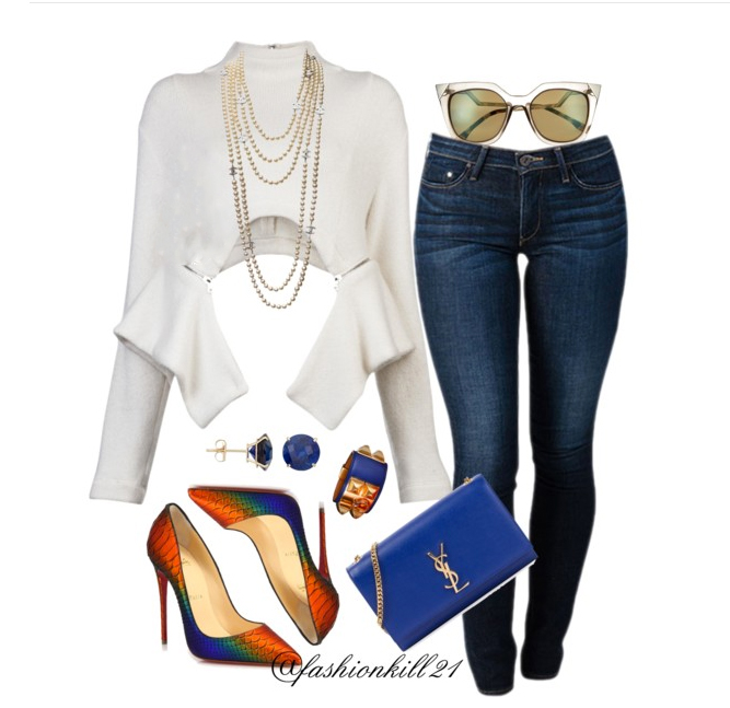 The multicolored beauts can go with just about anything, even a white tee and jeans with a bomb purse.