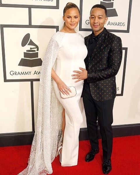Mommy-to-be Chrissy Teigen and hubby John Legend were on hand for the 58th Annual GRAMMY Awards and their red carpet appearance literally broke the internet! Ringing in with about 18,000 likes on BeautyLifeFun’s Instagram, this bomb couple was the epitome of chic; however, Chrissy was the true showstopper. The model uplifted a caped white number by Yousef Al-Jasmi that complimented her baby bump perfectly. She also accesssorized with a matching clutch and white sandals. Aren’t they adorable?