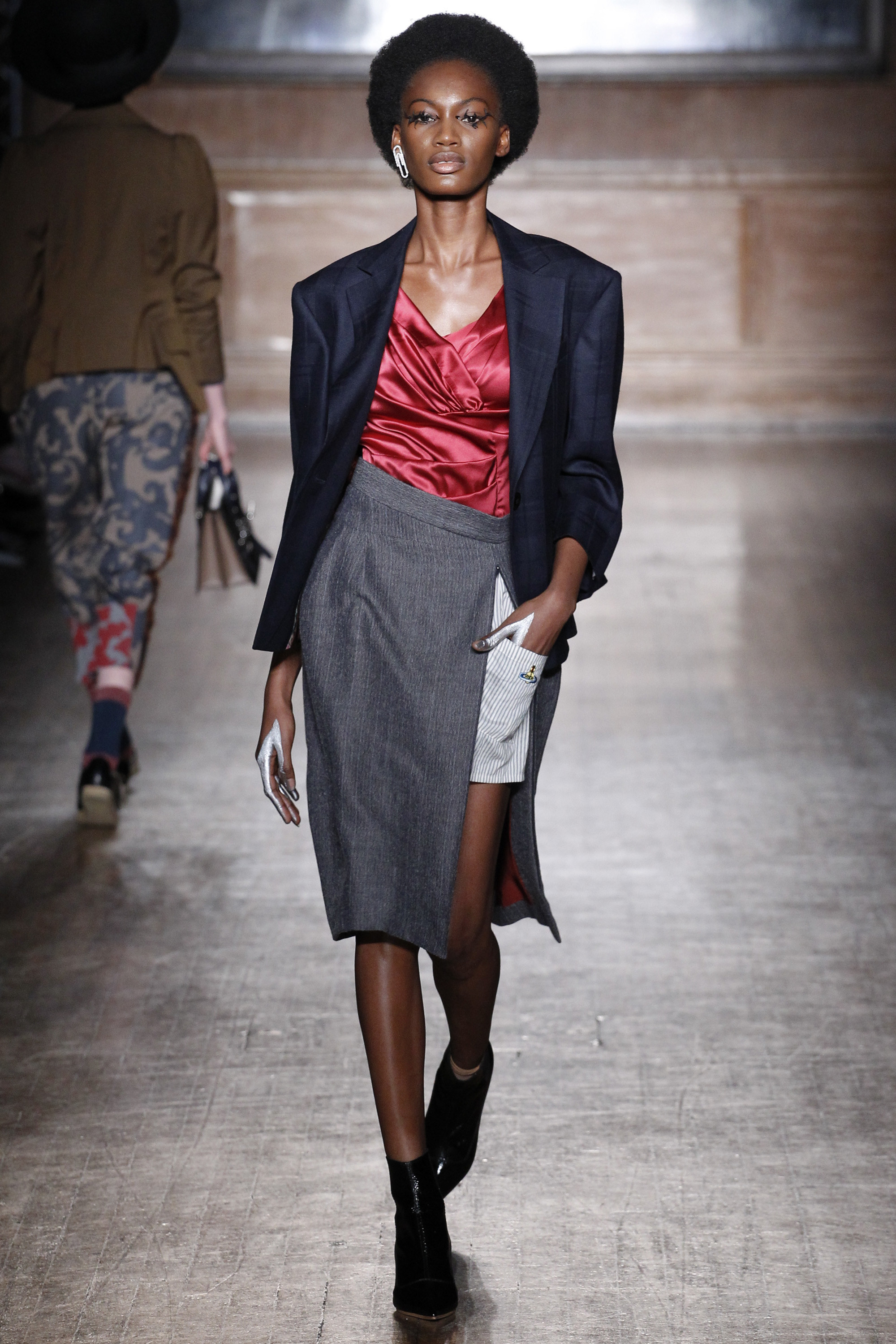 Grand dame Vivienne Westwood can do little wrong in the eyes of the British fashion community. Influenced by renaissance artists Donatello and El Greco, the Fall 2016 RTW collection featured models wearing burgundy porkpie hats, fluidly draped silhouettes and a rich color palette of earthy greens, apple reds, and pale olives.