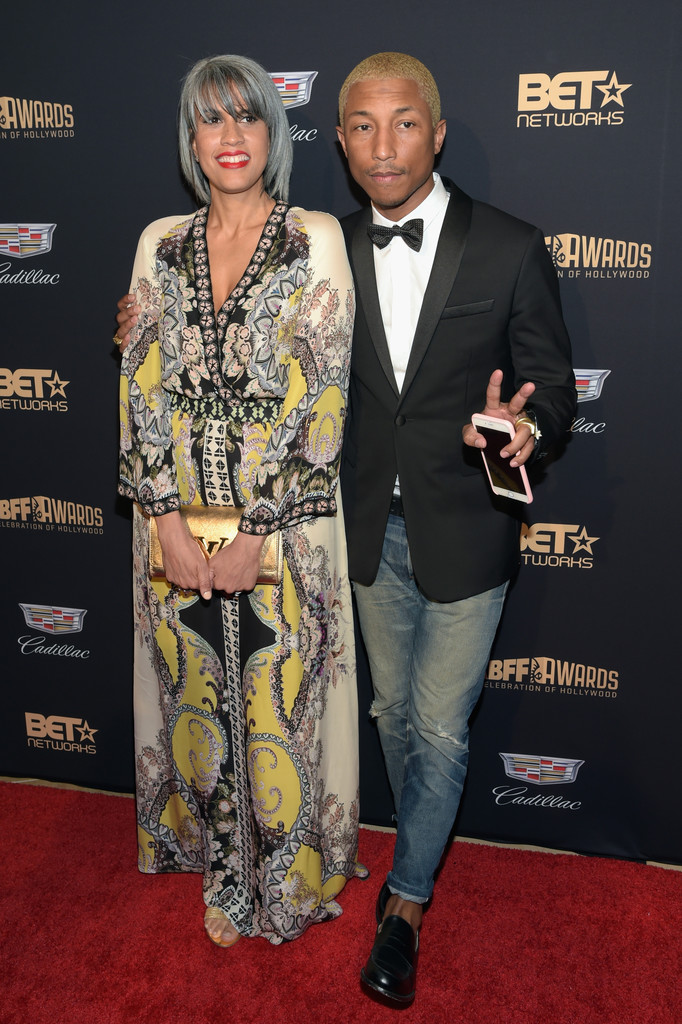 Pharrell threw up the deuces with his I am Other creative director Mimi Valdes. Mimi werked an embellished print silk gown by Etro.