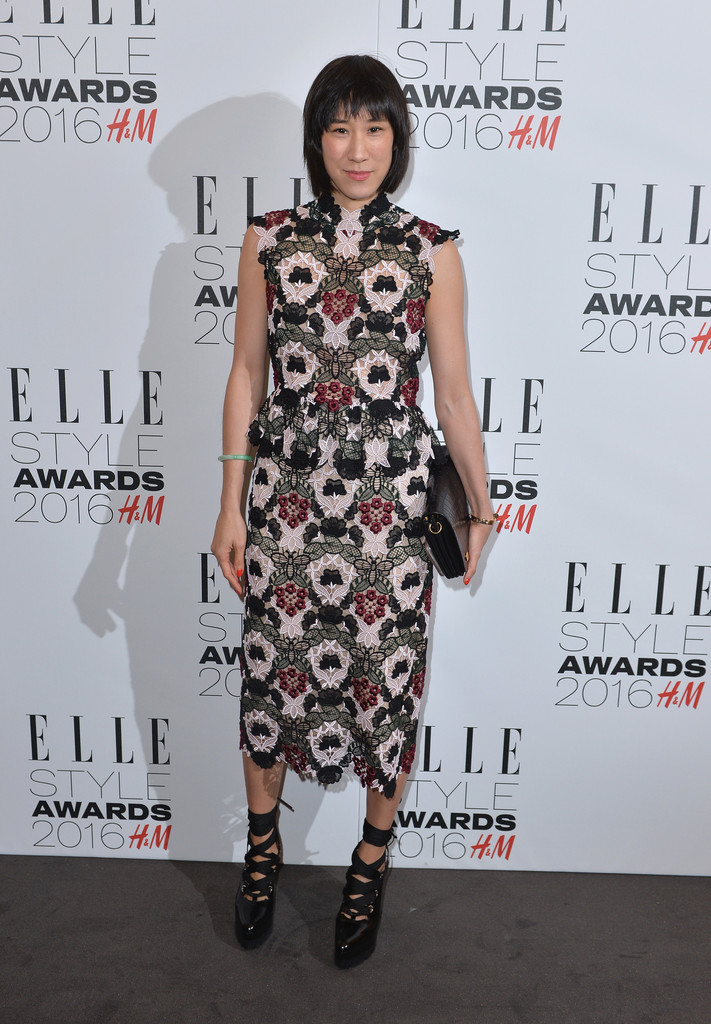 Eva Chen couldn’t be missed in an embellished Erdem midi dress and sky-high Mulberry platform ankle-tie pumps. I live for her style!