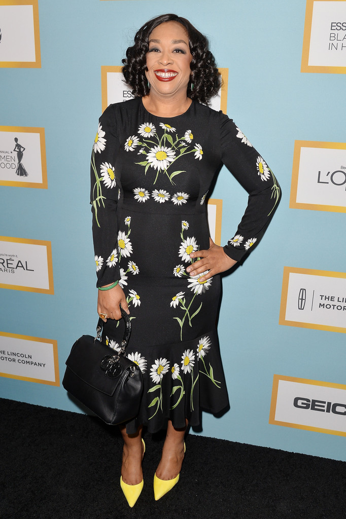 Media extraordinaire Shonda Rhimes came rocking a daisy-inspired dress, with matching yellow shoes to match. I’m indifferent to the outfit, what do you guys think?