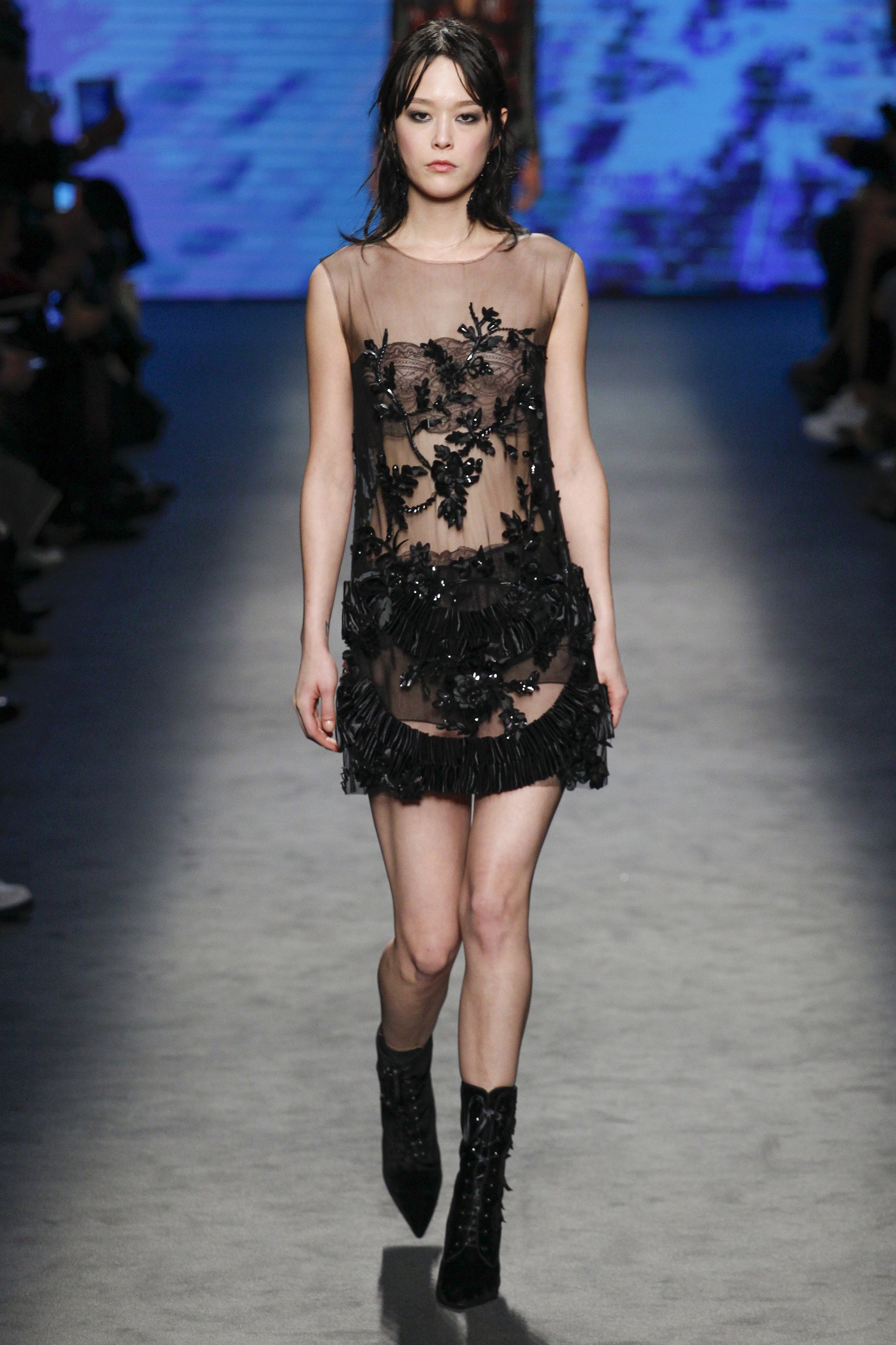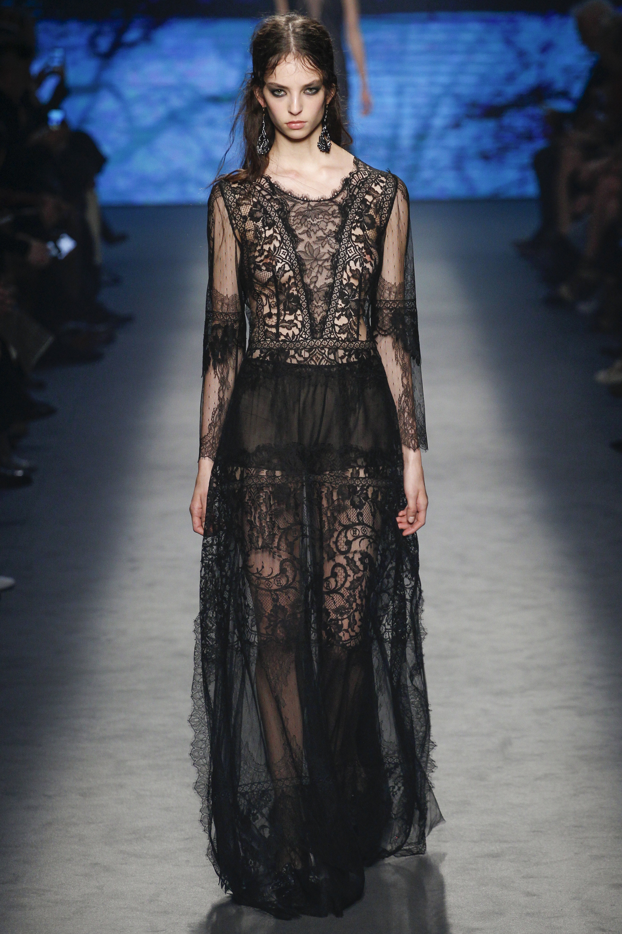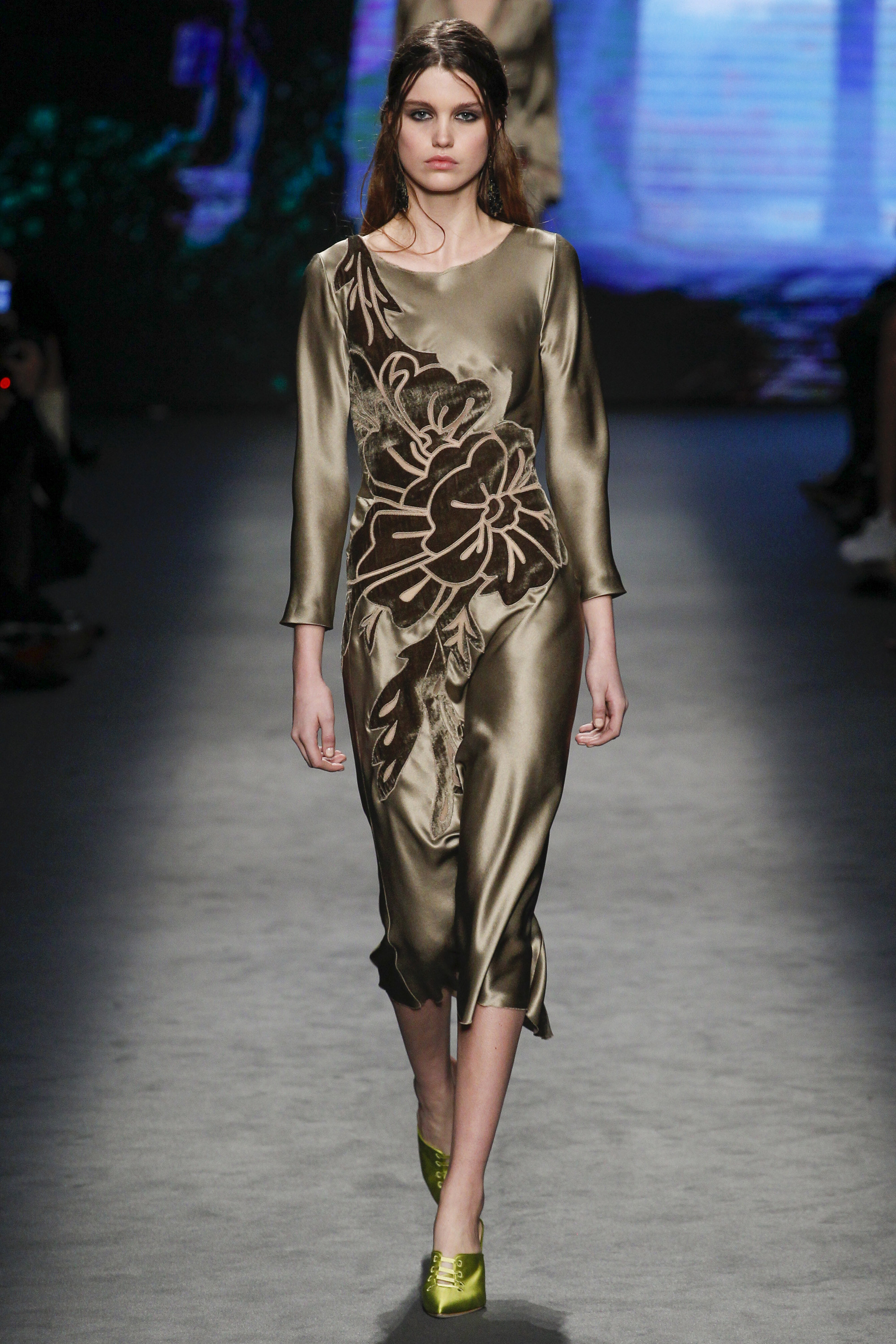 Floral print, lace, fanciful embroidery, princess-perfect tulle: these elements lie at the foundation of the Alberta Ferretti brand. Her looks consistently make the red carpet a prettier place and inject an unforgettable delicacy and charm into any affair where they’re worn. Her trademarks were all on display for Fall.