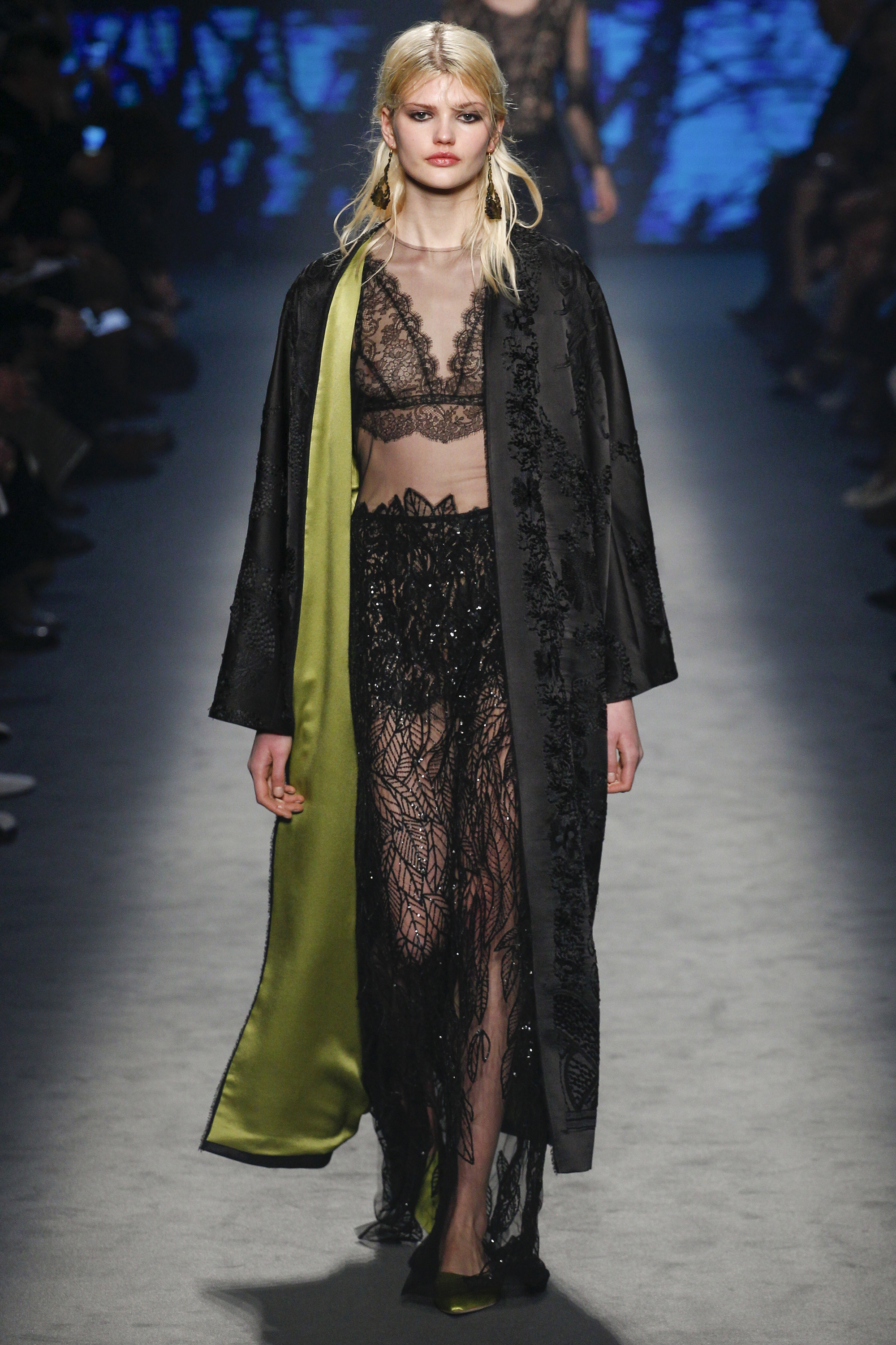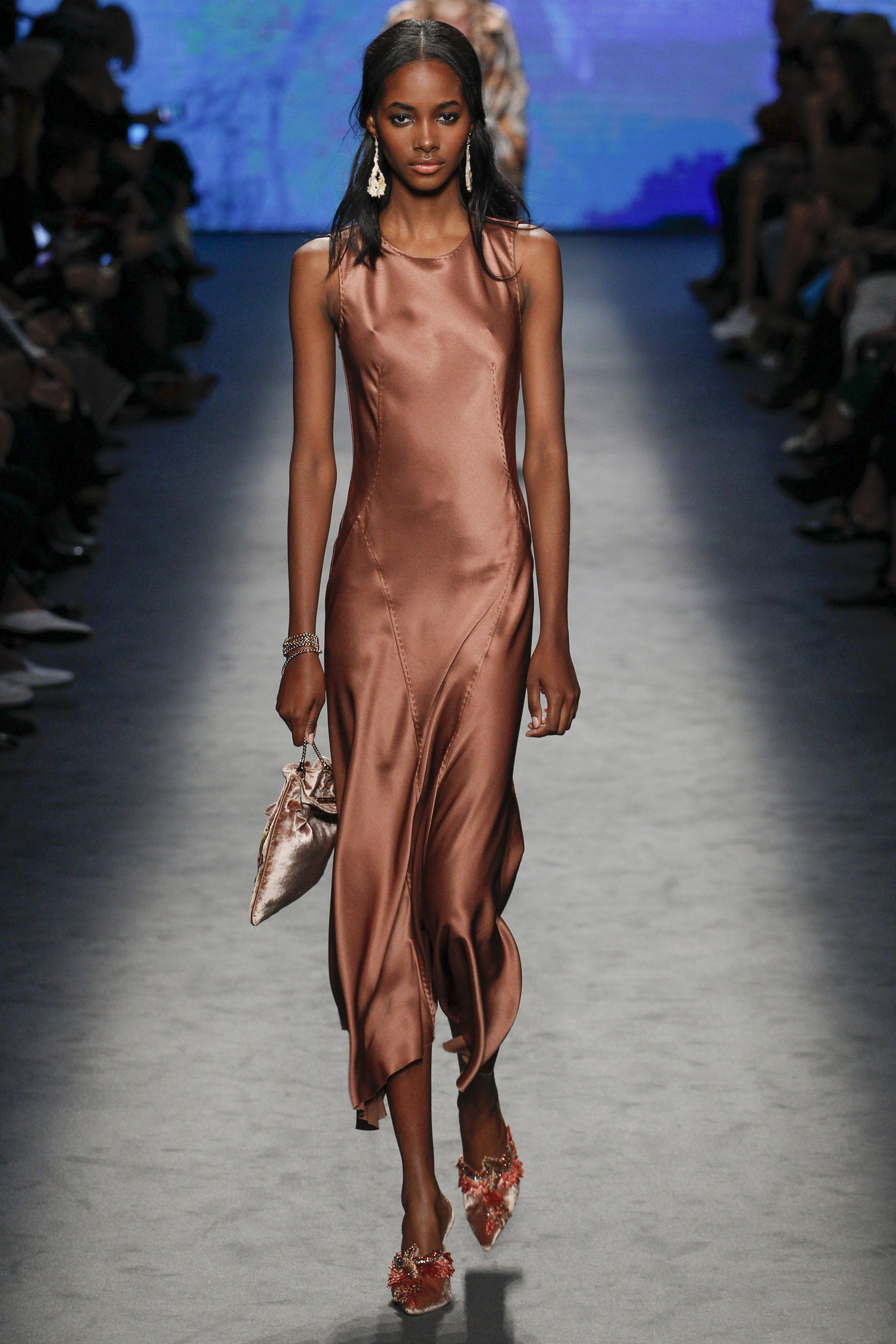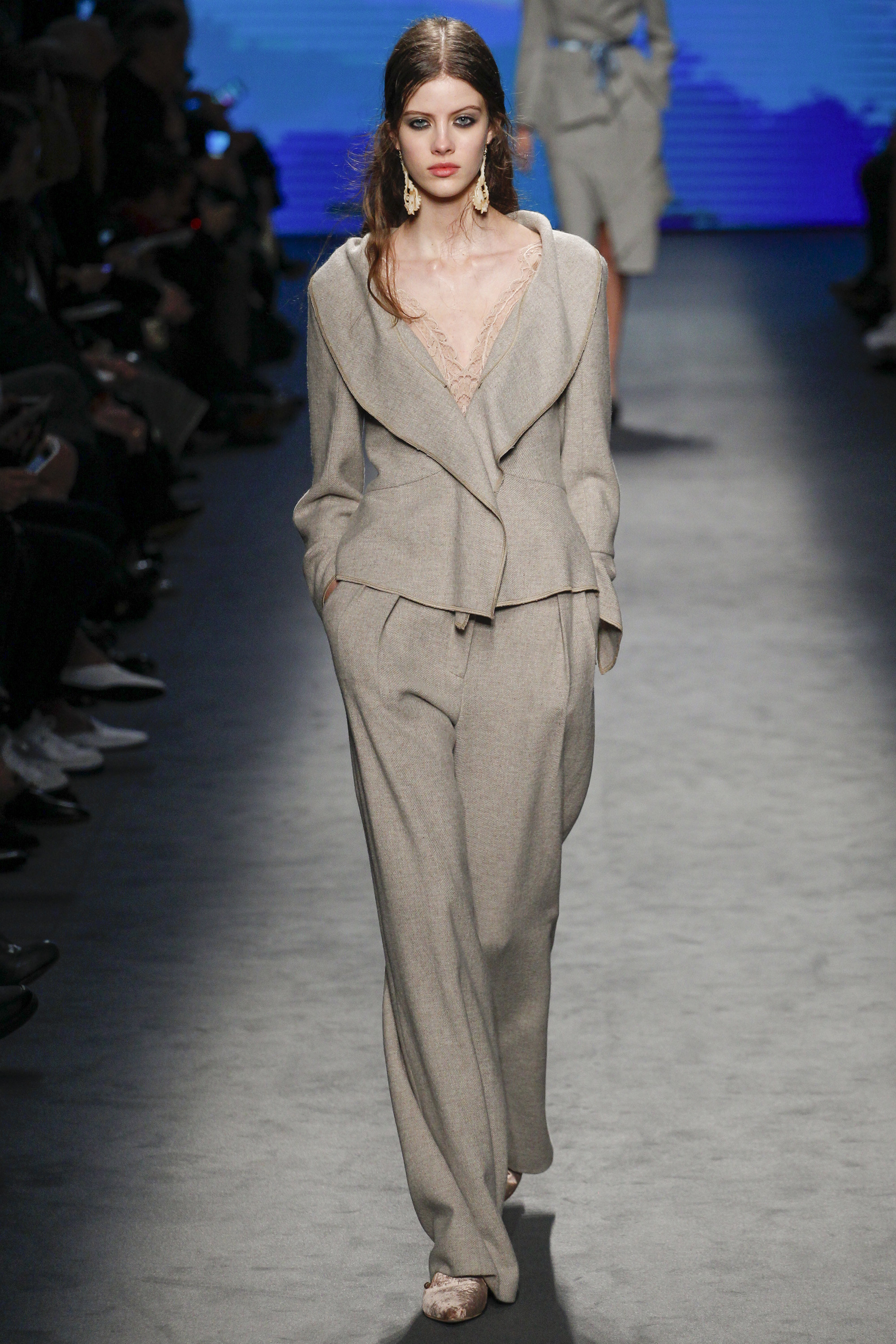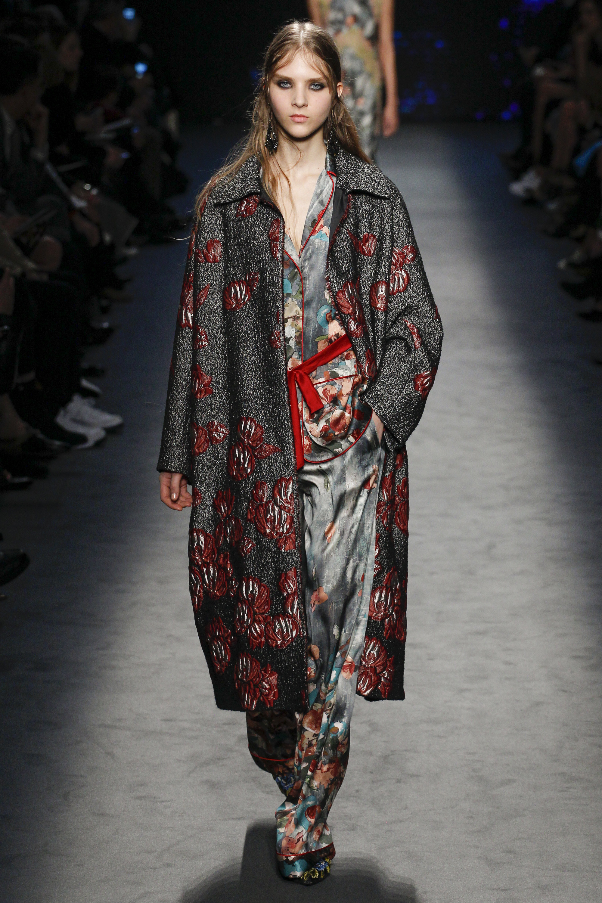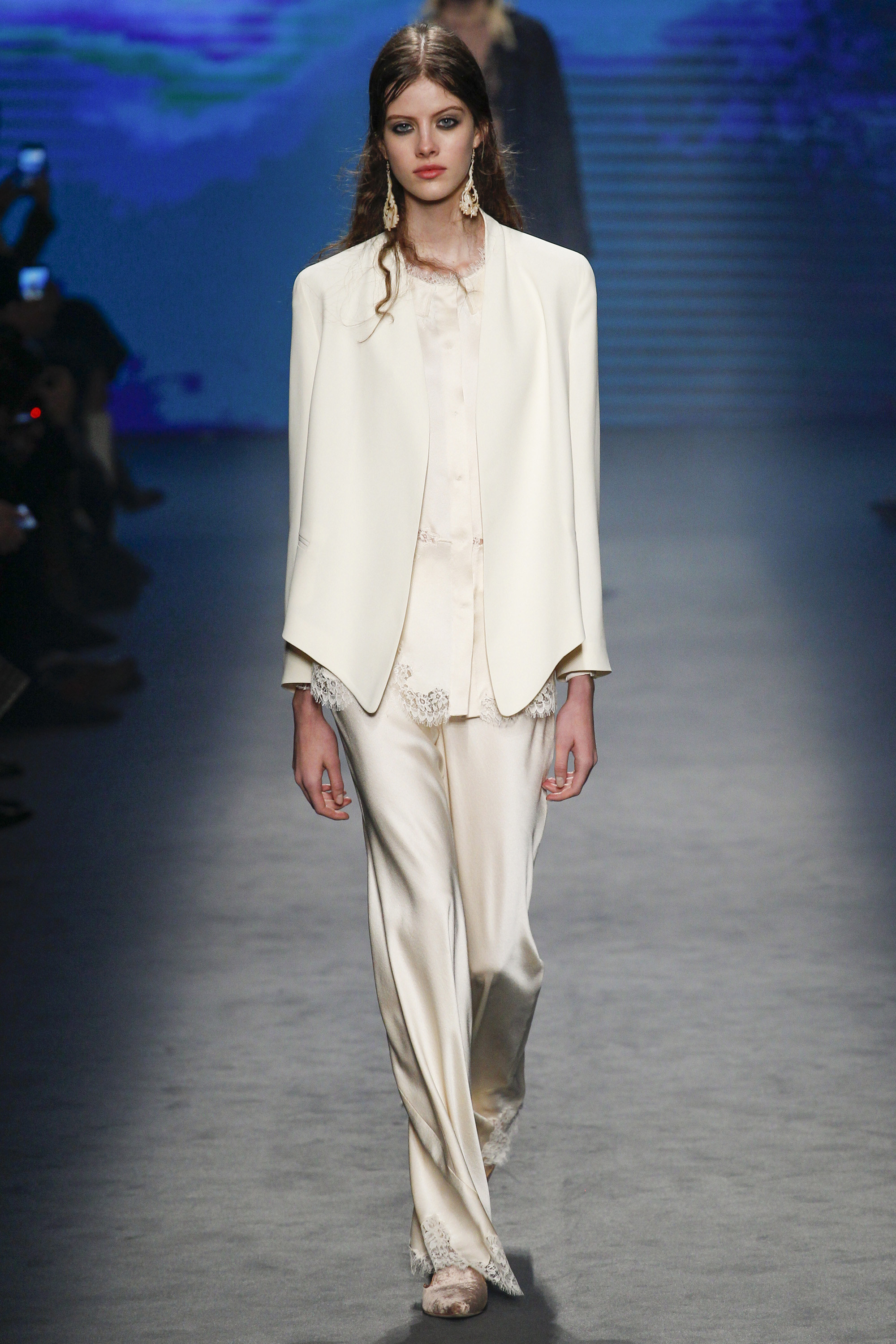Lace, bedroom-ready pajamas, and fur were thrown in the mix right out of the gate: anchored with embellished takes on the slipper. Suiting was easy and functional, yet polished, while slip gowns were often paired with a cozy coat for a sample of real-time wear.