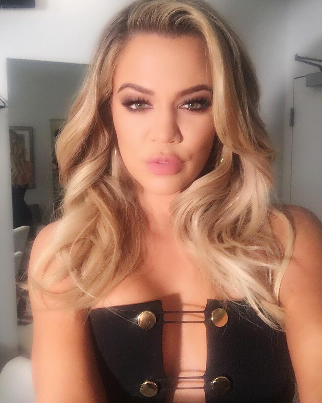 Khloe Kardashian posed on Instagram in a $1,625 Cushnie et Ochs Black Strapless Button Front Sheath Dress, styled by Monica Rose: