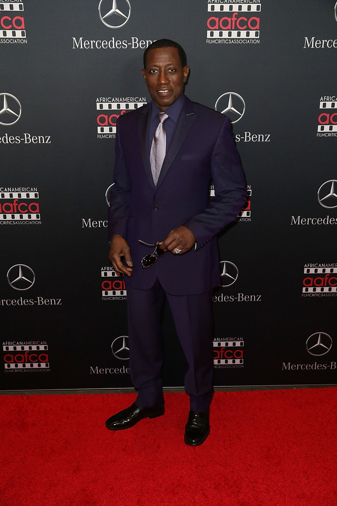 Wesley Snipes followed suit (no pun intended) in a dark blue fitted tuxedo.